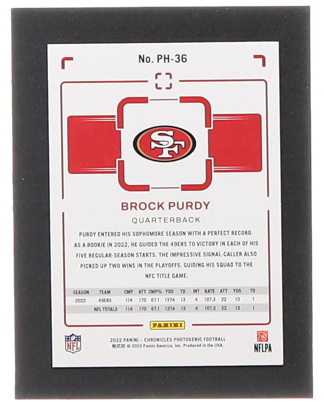 Brock Purdy 2022 Panini Chronicles Photogenic Teal #36 RC
