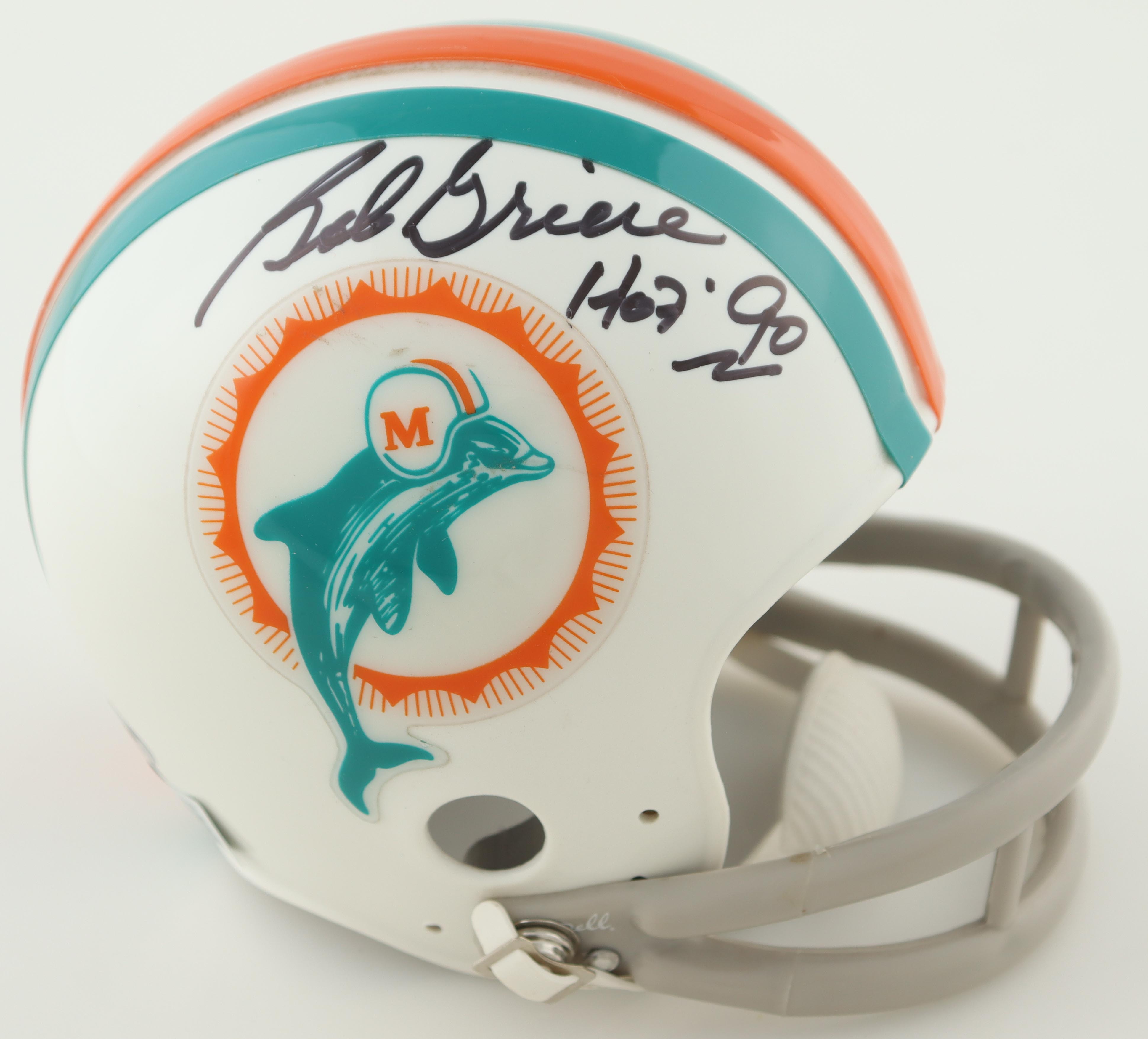 Riddell Miami Dolphins mini helmet. Hand-signed and inscribed by Bob Griese (HOF).