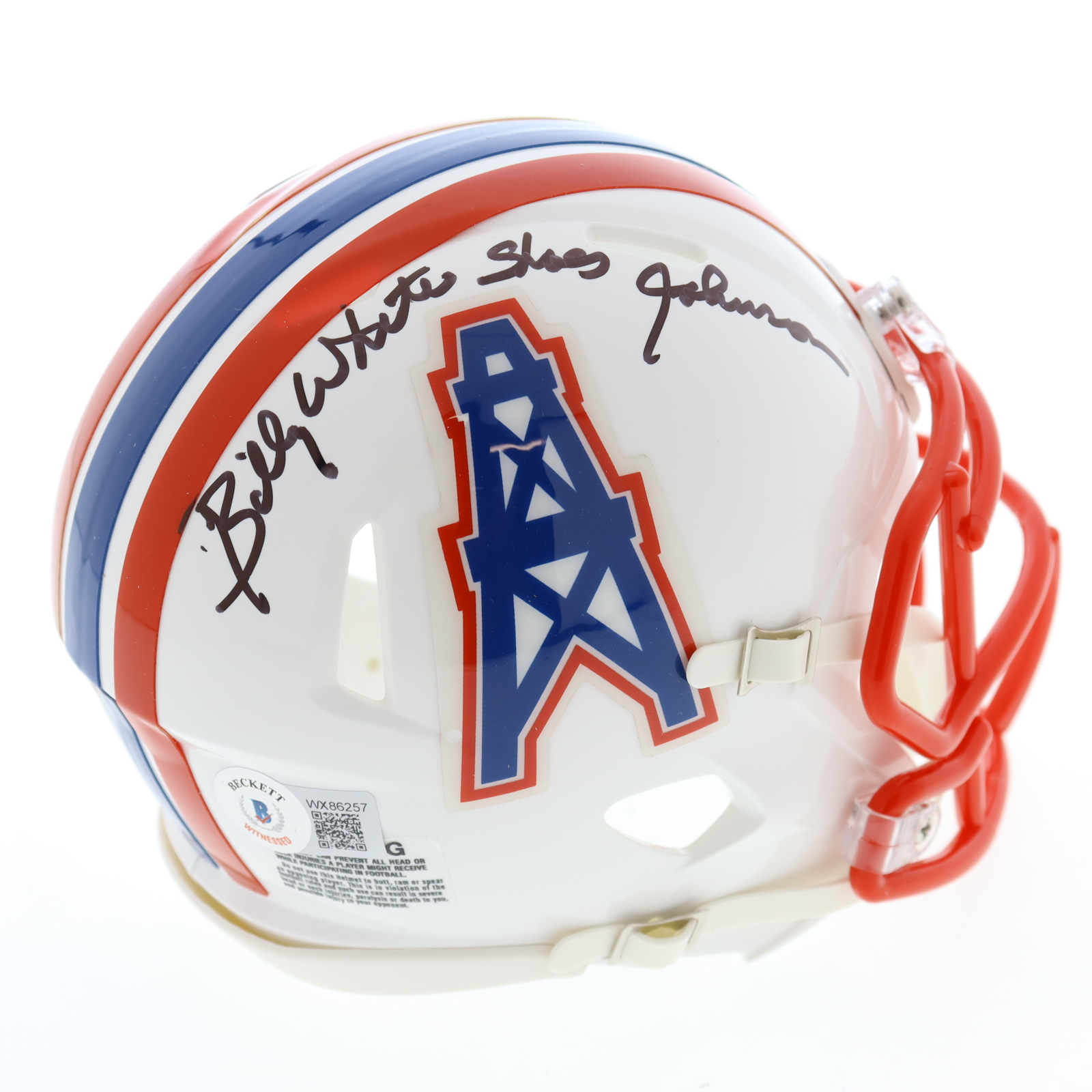 Riddell Houston Oilers Speed mini helmet. Hand-signed by Billy Johnson.