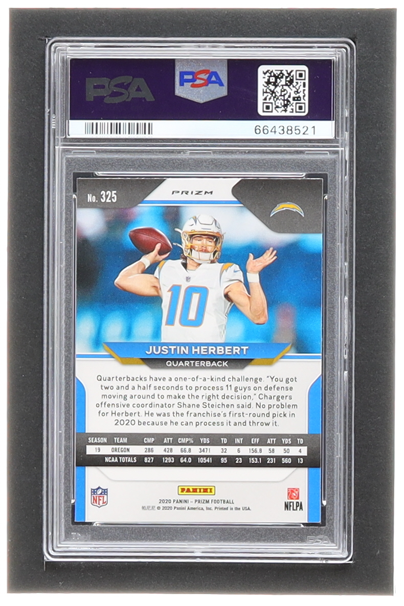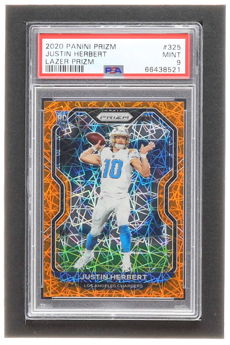 Justin Herbert 2020 Panini Prizm Prizms Orange Lazer #325 RC (PSA 9)
