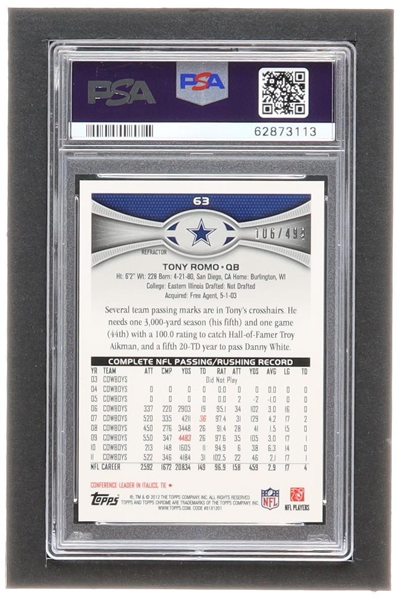 Tony Romo 2012 Topps Chrome Purple Refractors #63 #106/499 (PSA 9)