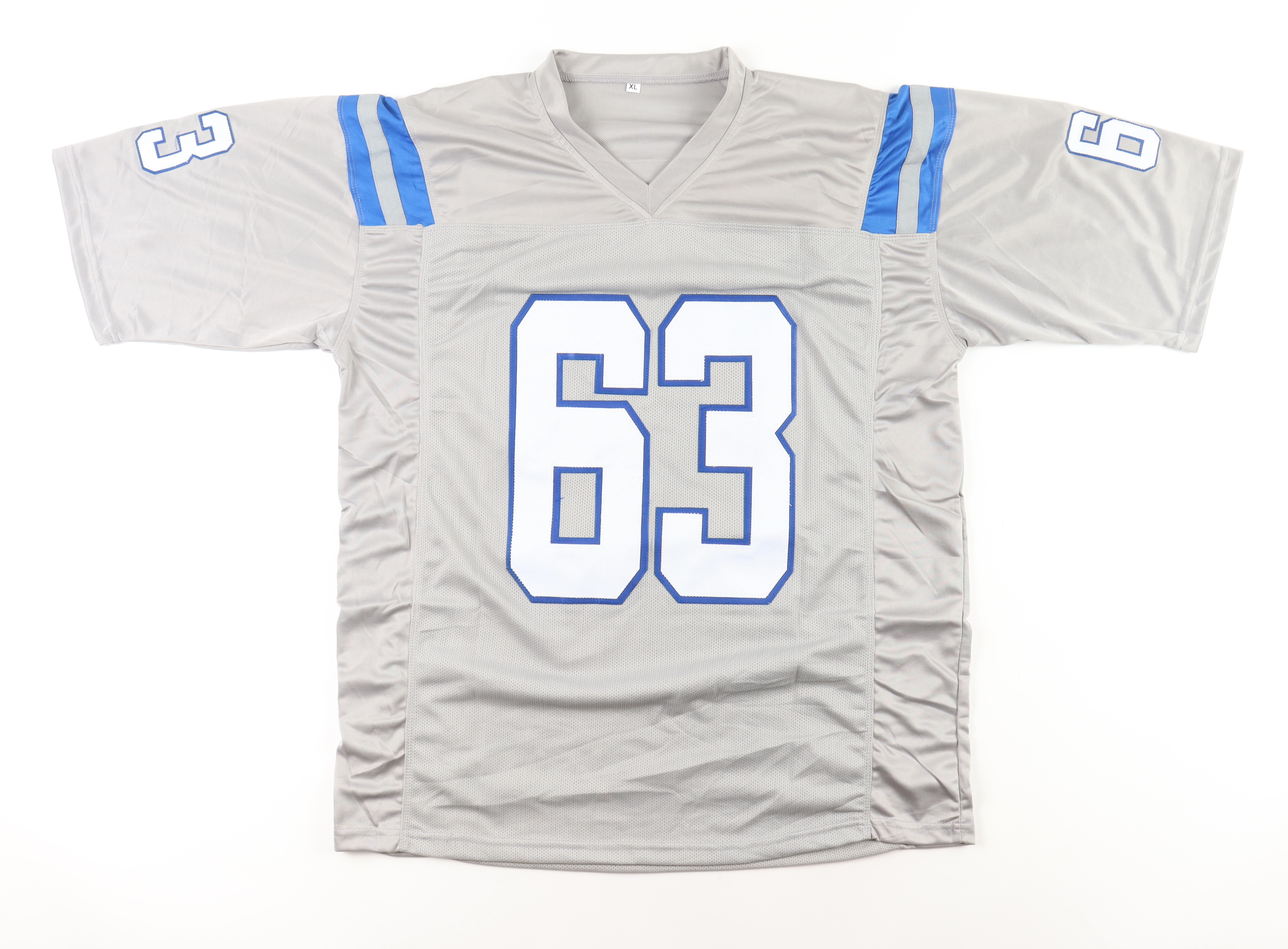 Custom jersey with everything sewn on, size XL. Hand-signed by Jeff Saturday.