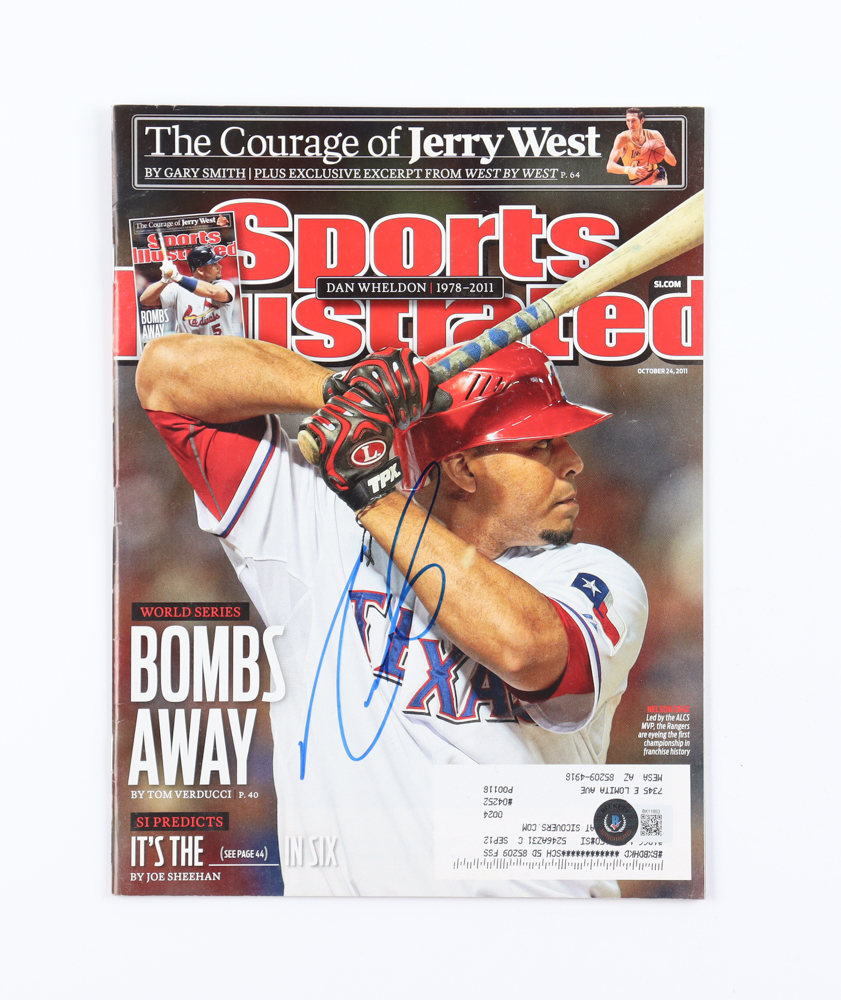 October 24th, 2011 "Sports Illustrated" magazine has been hand-signed on the cover by Nelson Cruz (Texas Rangers).