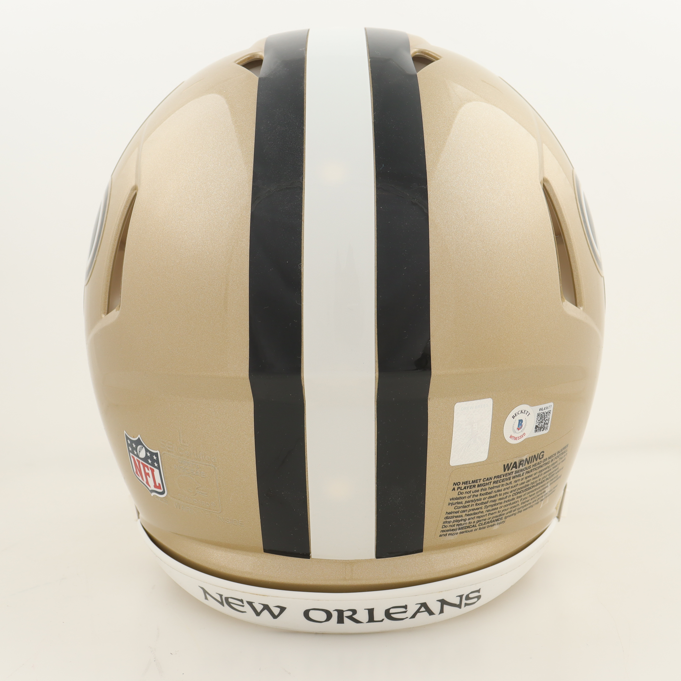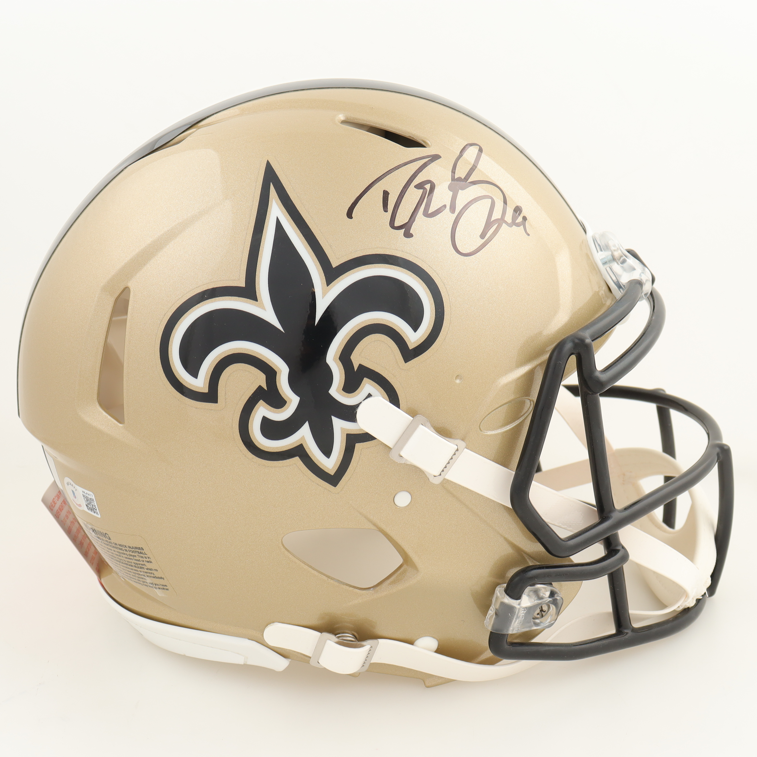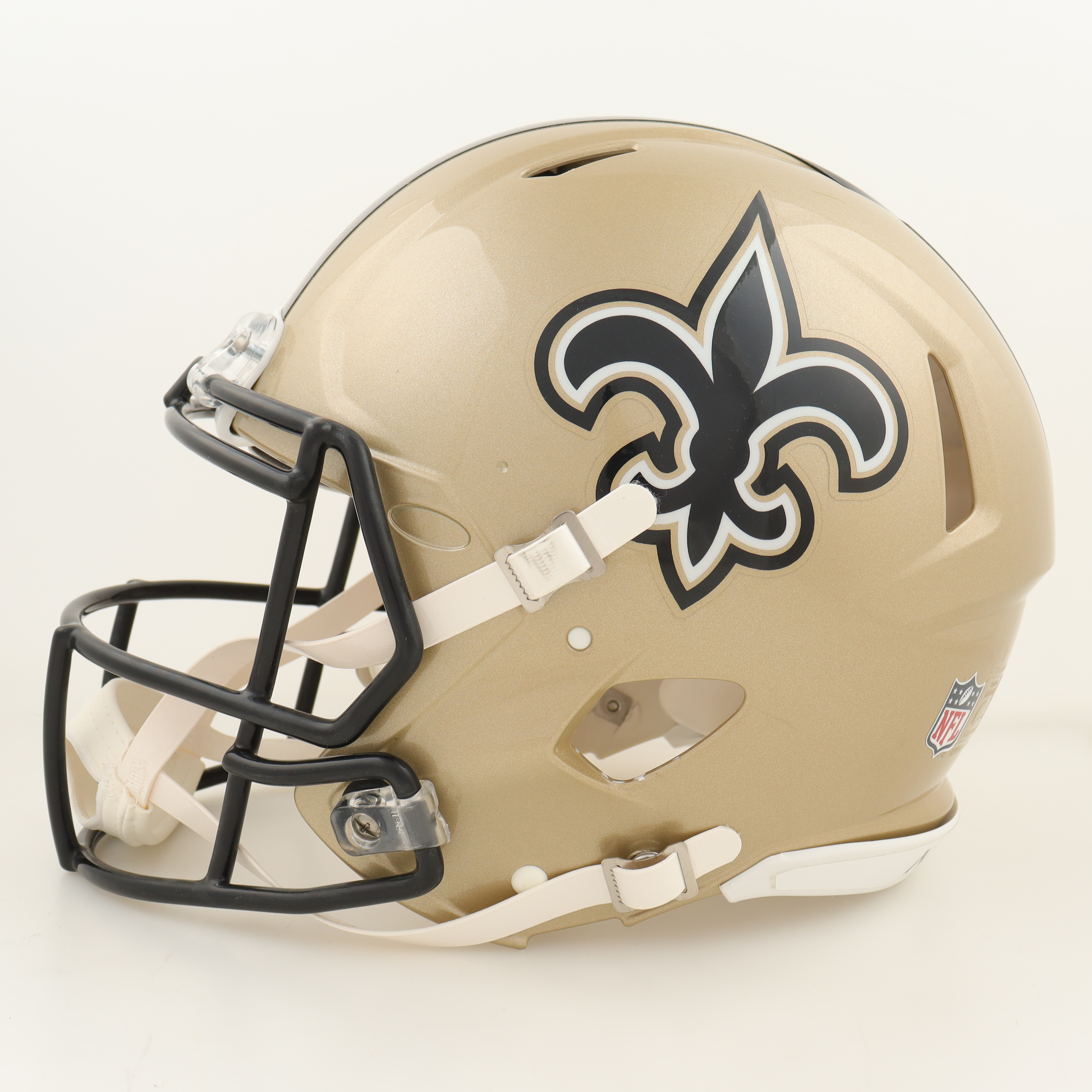 Riddell New Orleans Saints full-size authentic on-field speed helmet has been hand-signed by Drew Brees.