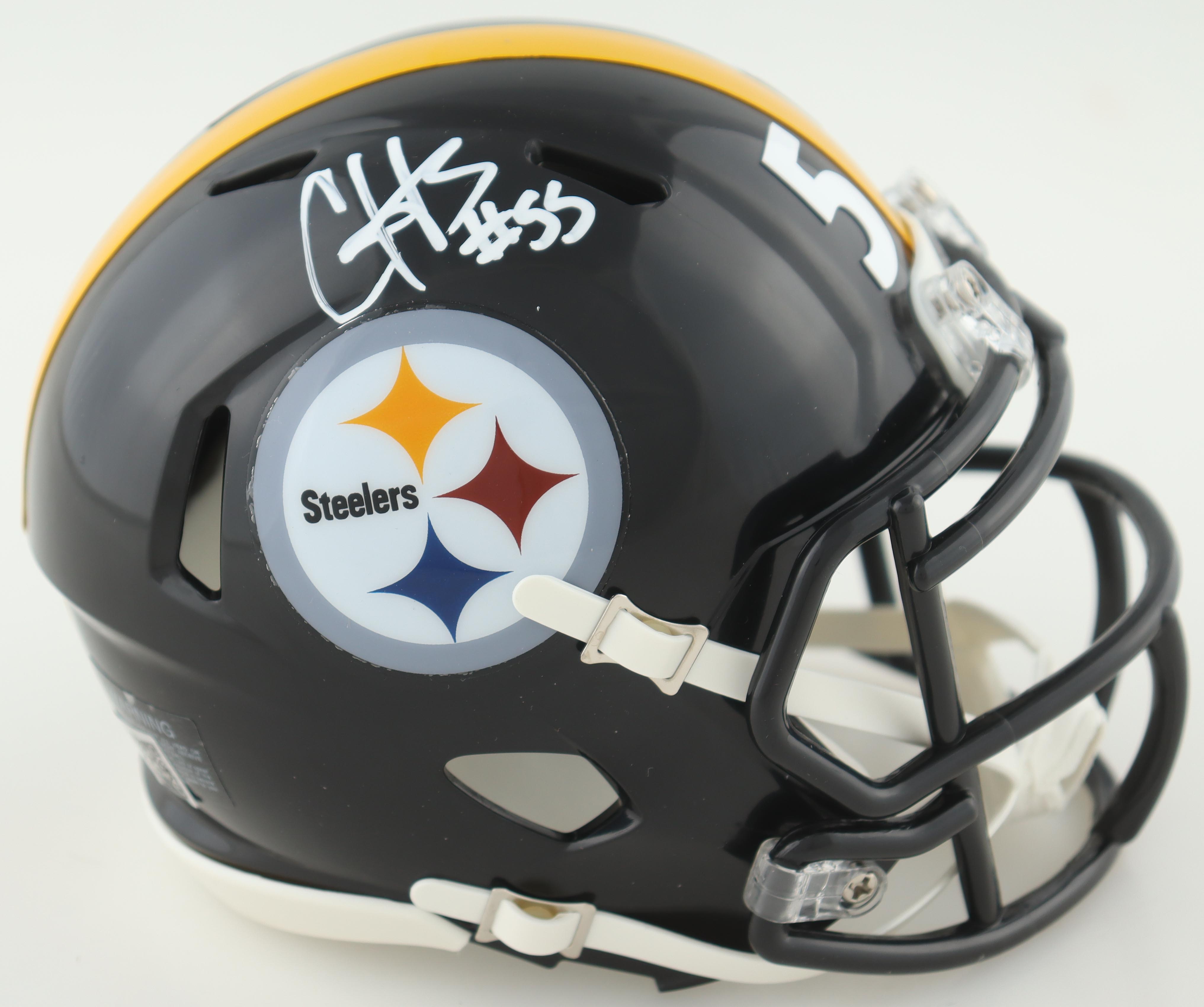 Riddell Pittsburgh Steelers speed mini helmet. Has been hand-signed by Cole Holcomb.