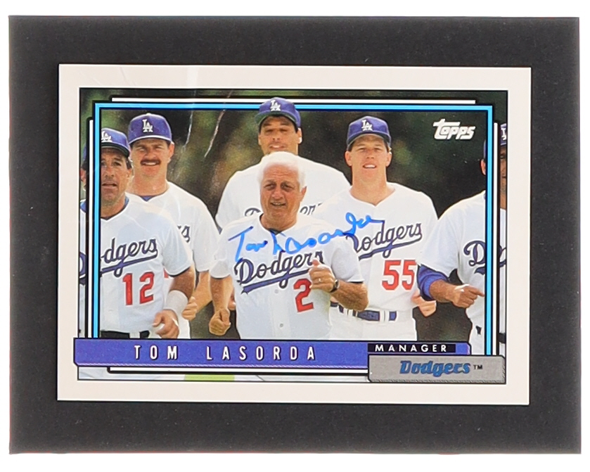 Card has been hand-signed by Tom Lasorda (D. 2021, Los Angeles Dodgers, HOF). Please see photos for details regarding the condition of the card.