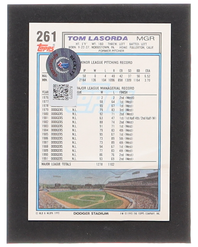 Tom Lasorda Signed 1992 Topps #261 MG (Beckett)