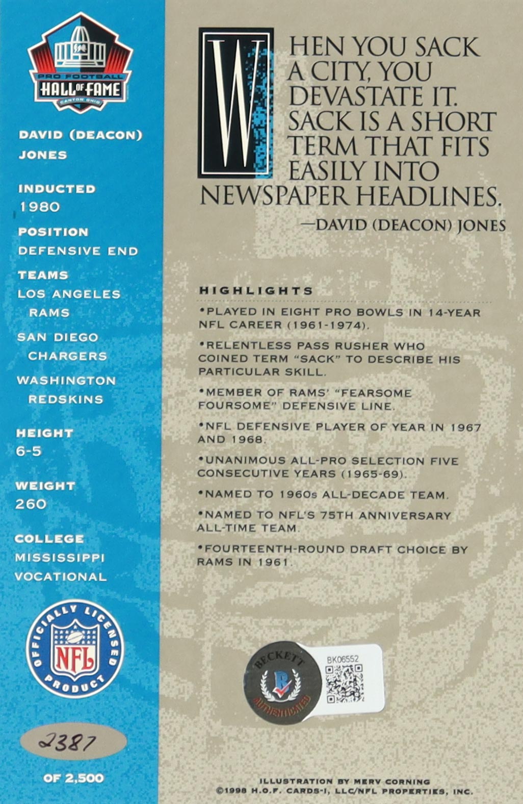 Deacon Jones 1998 Ron Mix HOF Platinum Autographs #48 (Beckett)