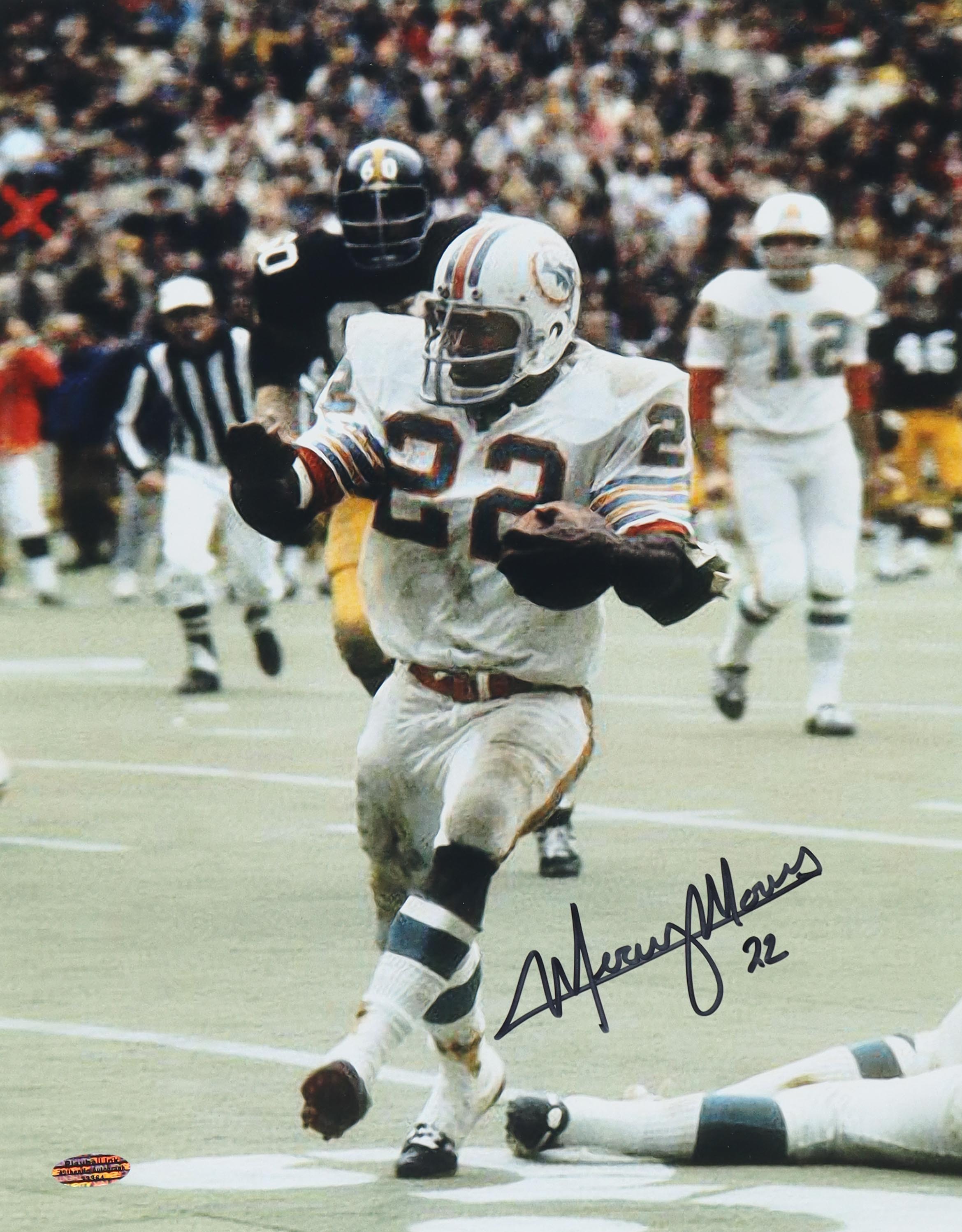 Photo measures 11" x 14" in size and has been hand-signed by Mercury Morris (Miami Dolphins).