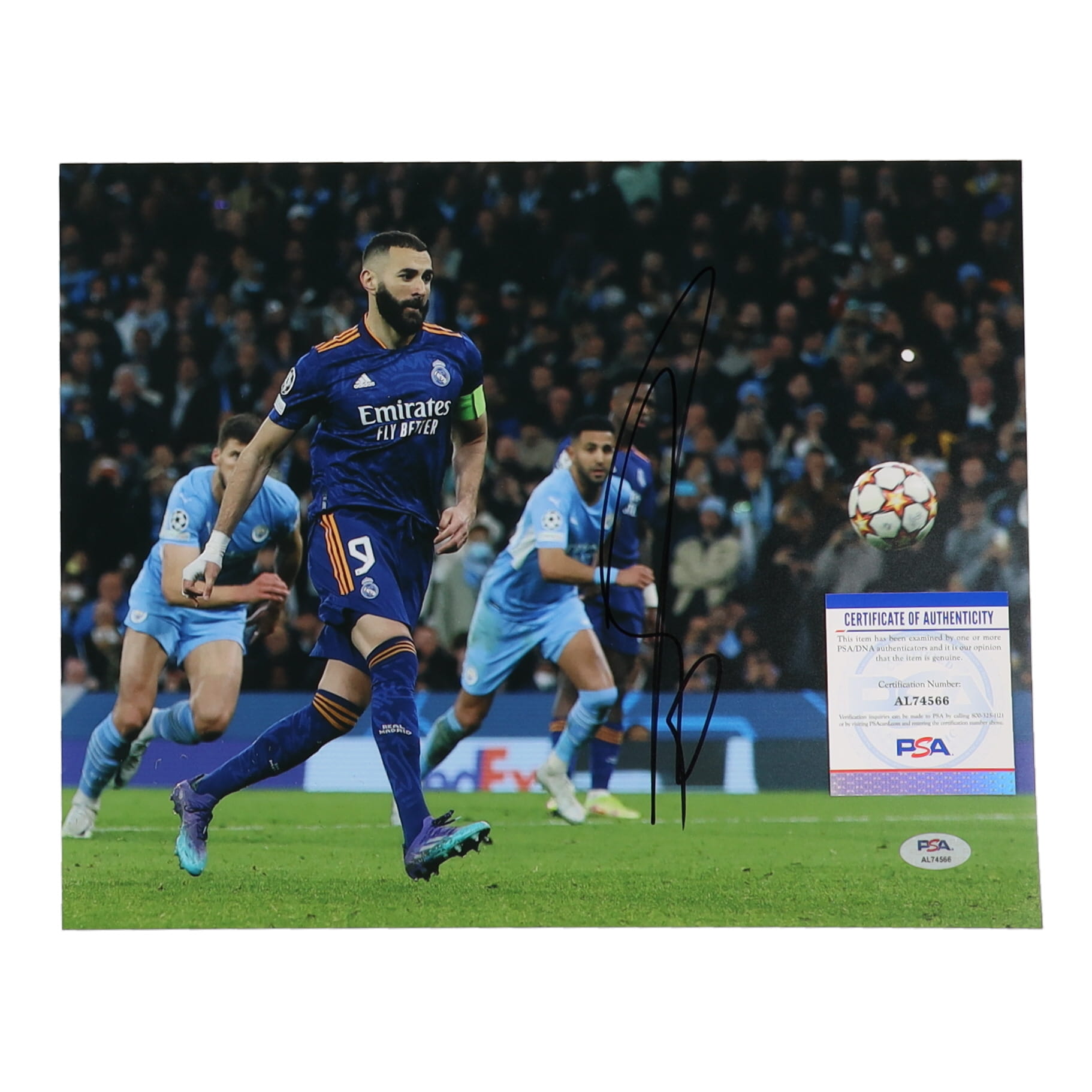 Photo measures 11" x 14" in size. Hand-signed by Karim Benzema.