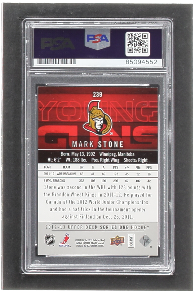 Mark Stone Signed 2012-13 Upper Deck #239 YG RC (PSA)