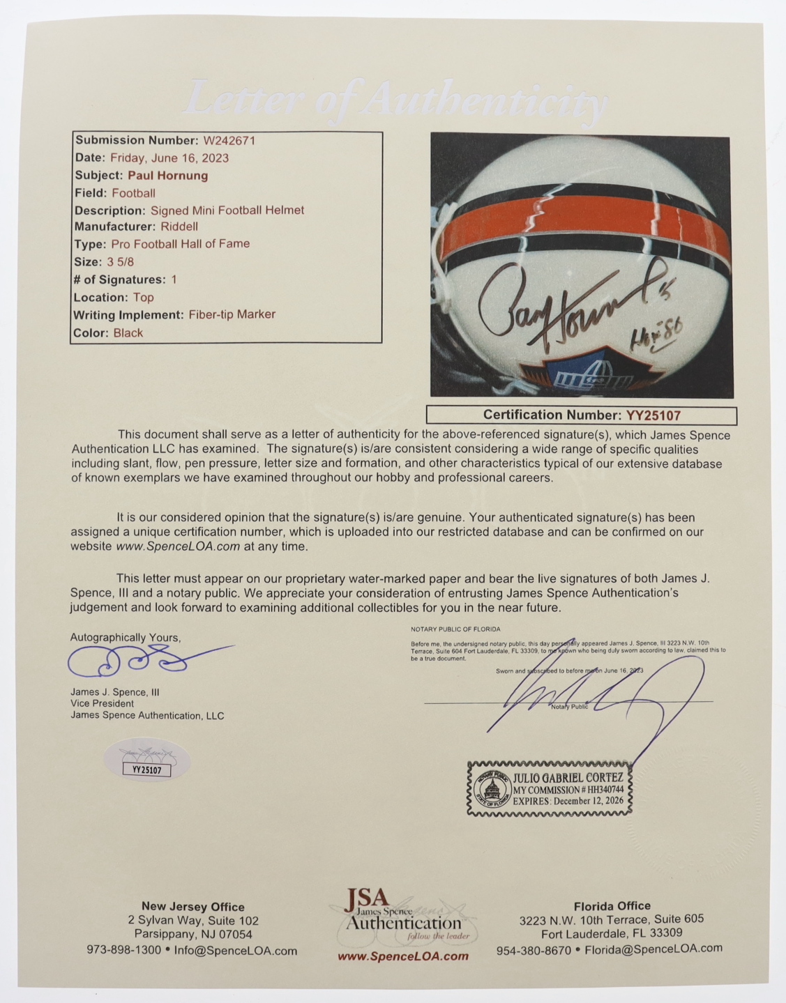 The autograph(s) includes an official James Spence Authentication (JSA) hologram and matching LOA for authenticity purposes.