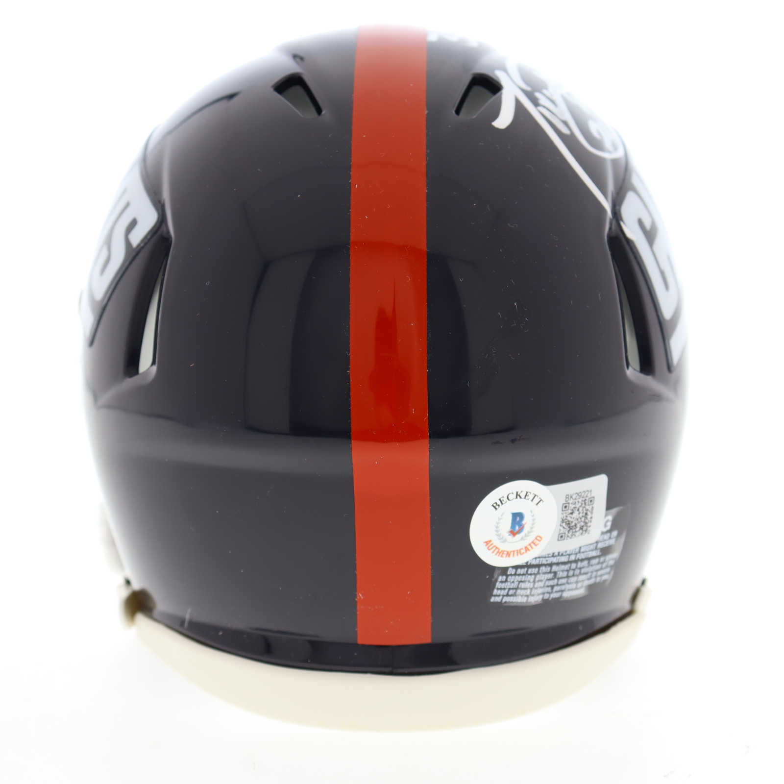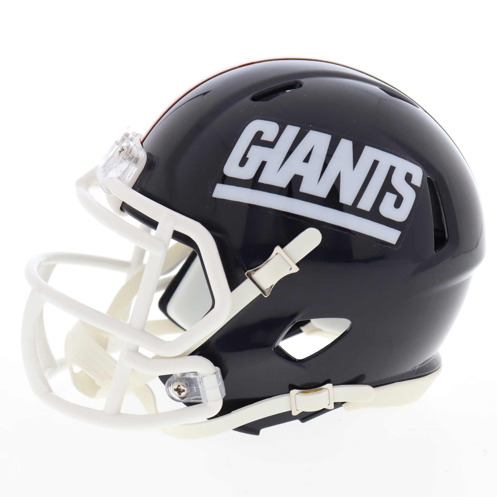 Riddell New York Giants speed mini helmet. Has been hand-signed and inscribed by Tiki Barber.