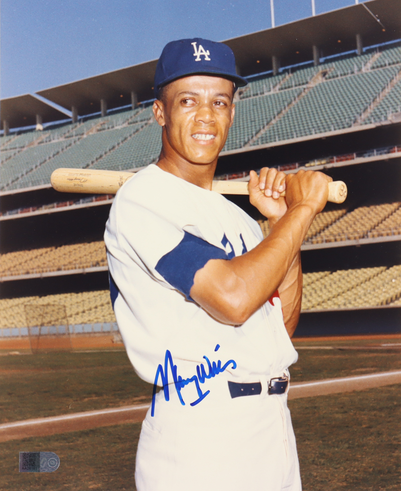 Photo measures 8" x 10" in size and has been hand-signed by Maury Wills (Los Angeles Dodgers).
