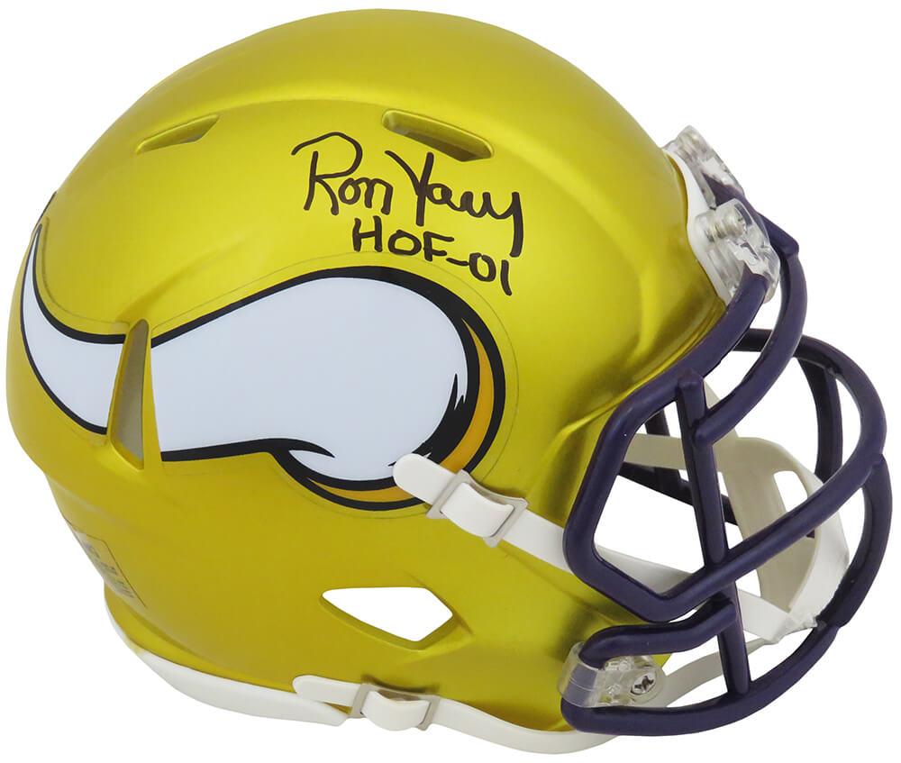 Riddell Minnesota Vikings Flash Alternate Speed Mini Helmet. Hand-signed and inscribed by Ron Yary (HOF).