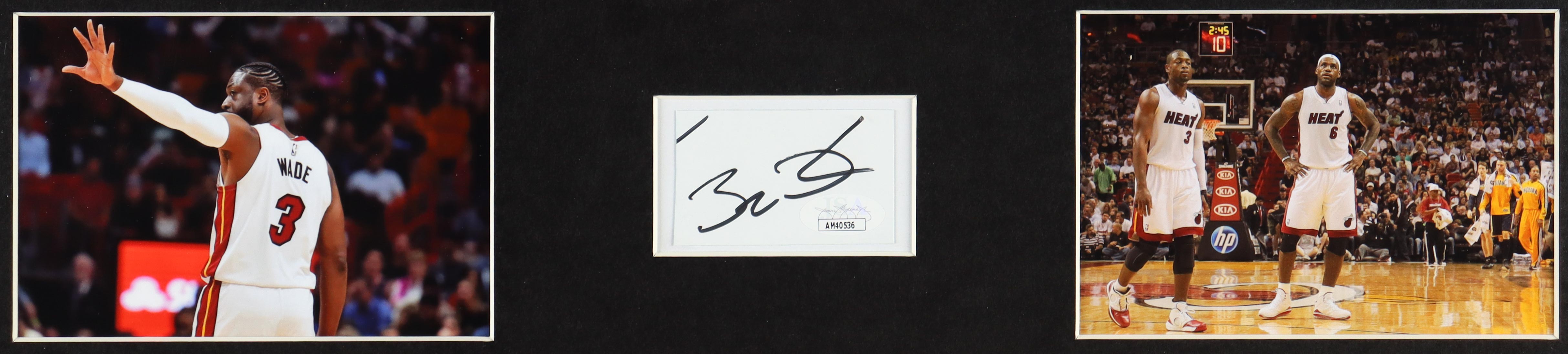 Custom frame measures approximately 23.5" x 31.5" in size and features a cut that has been hand signed by Dwyane Wade (HOF). The display also includes an unsigned jersey. Please note, there is scuffing on the frame.