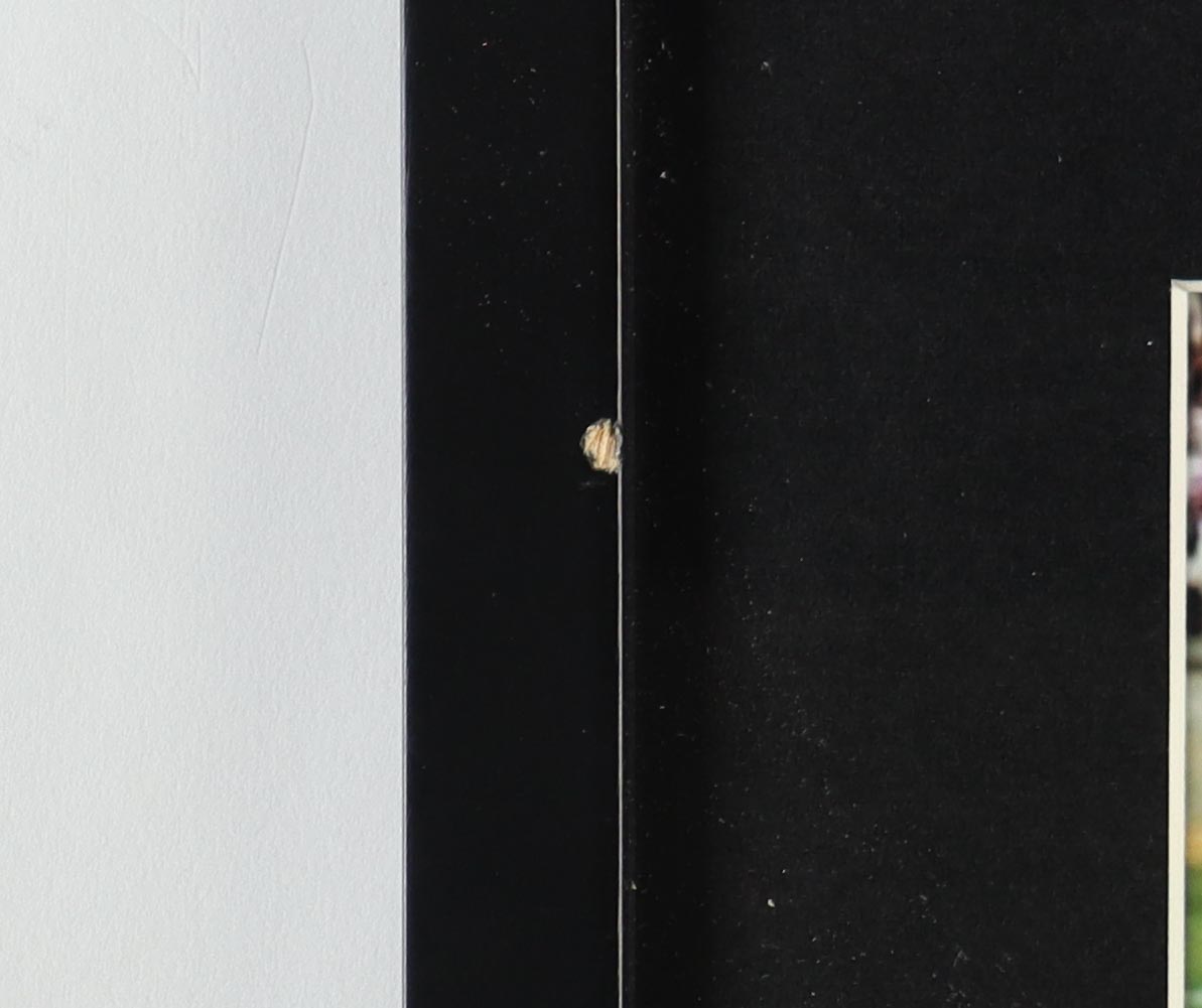 Custom frame measures approximately 23.5" x 31.5" in size and features a cut that has been hand signed by Tom Hanks. The display also includes an unsigned jersey. Please note, there is scuffing on the frame and a chip on the left lower edge.