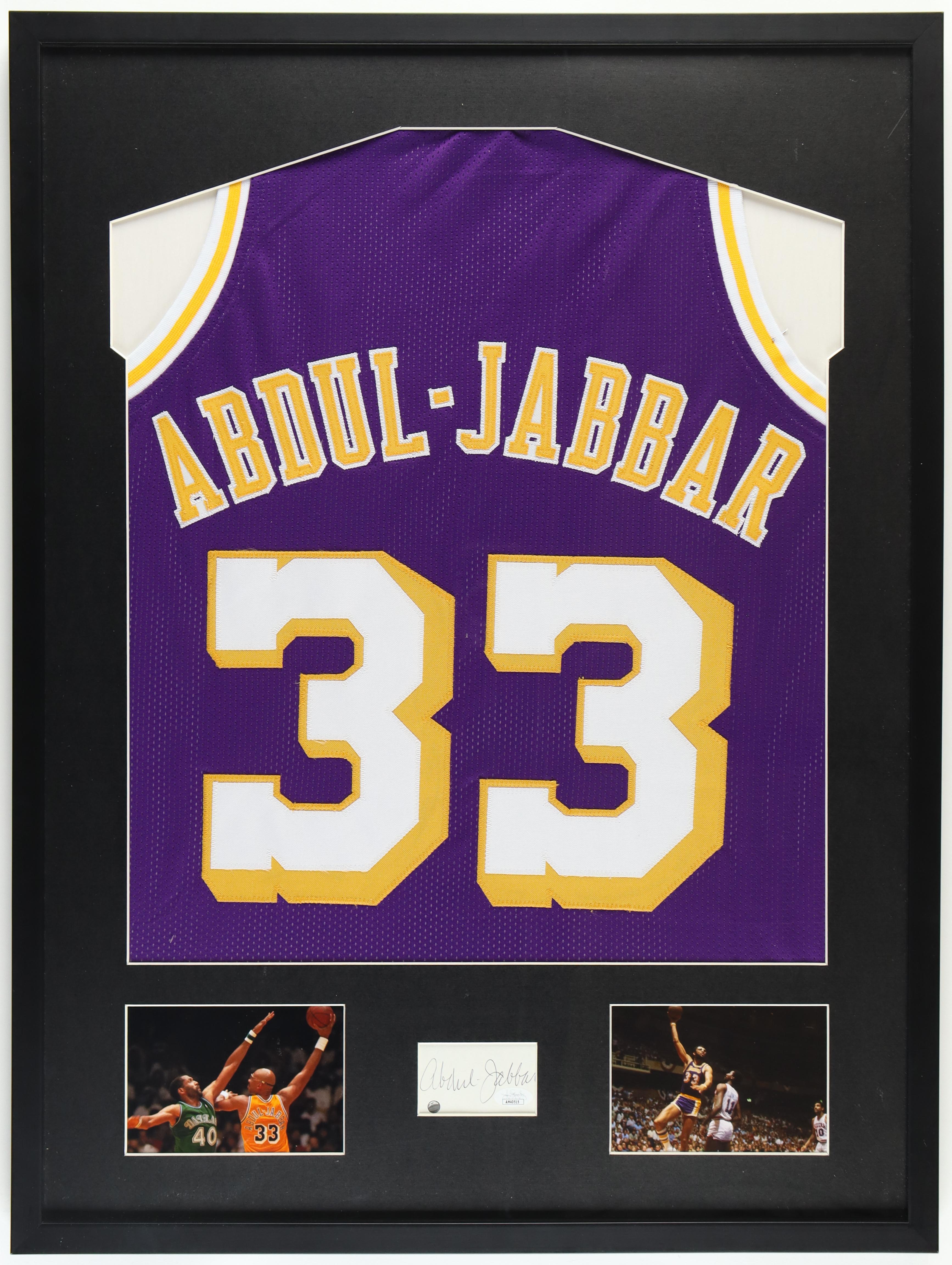 Kareem Abdul-Jabbar Signed Custom Framed Cut Display with Jersey (JSA)