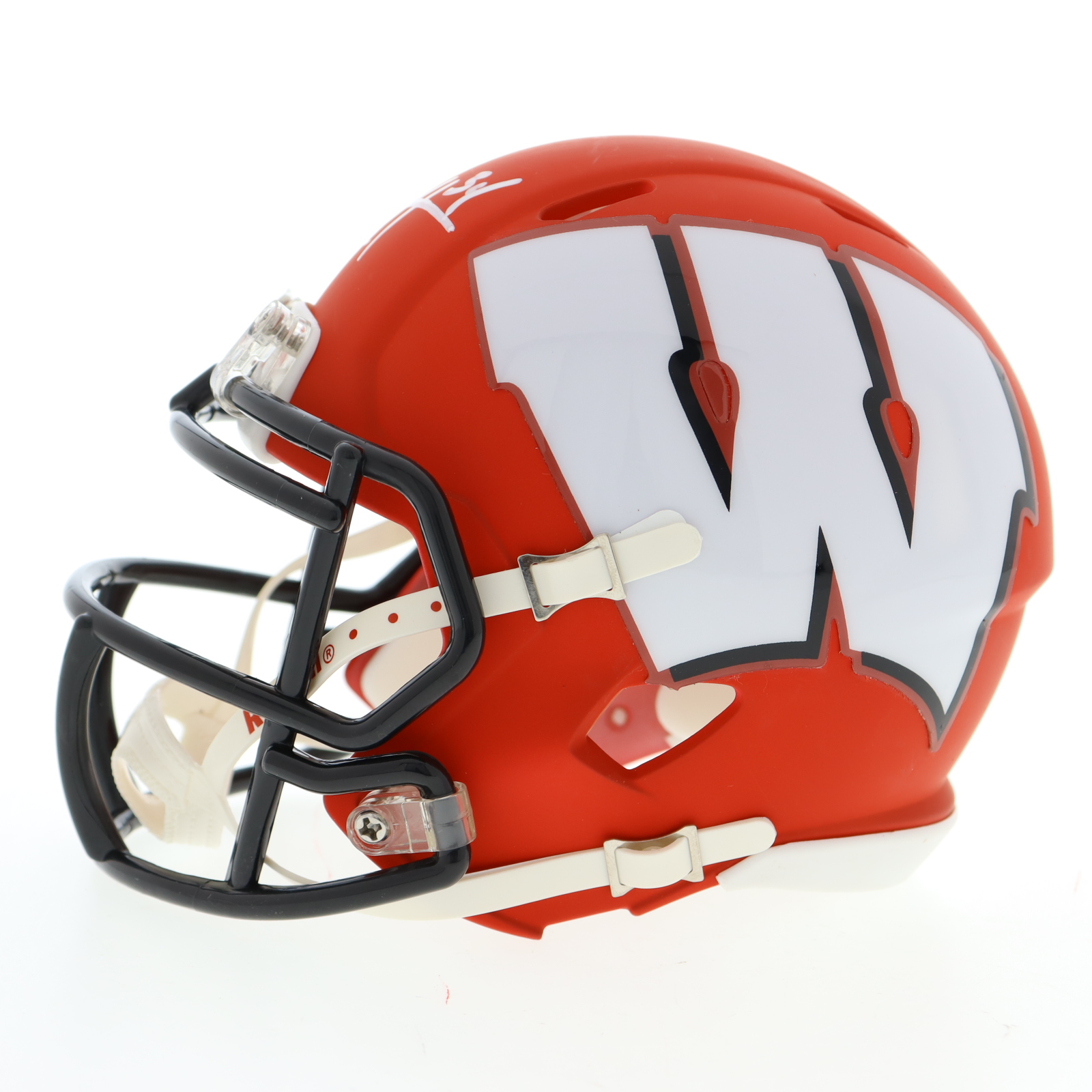 Riddell Wisconsin Badgers Speed mini helmet. Hand-signed by Derek Watt.