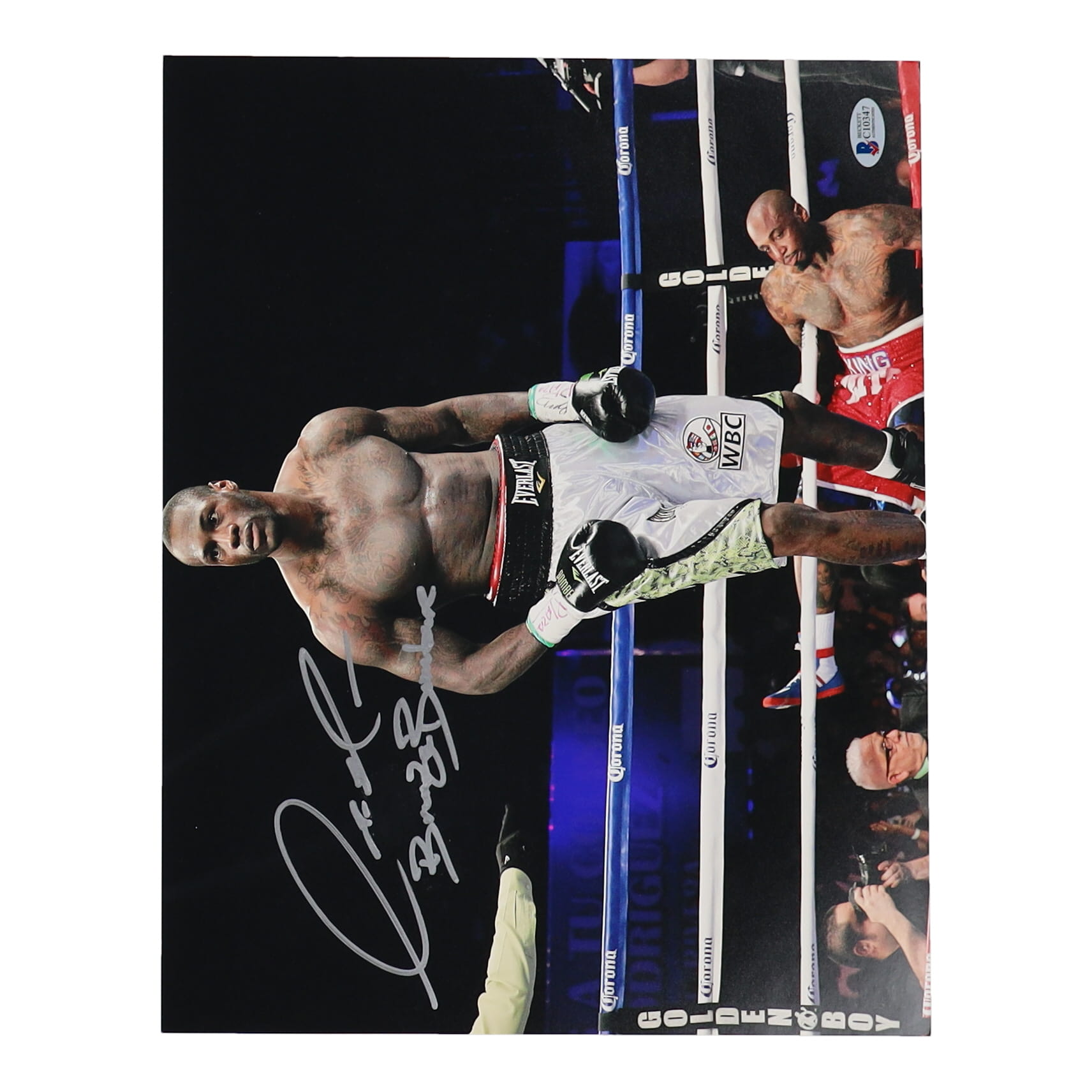 Photo measures 11" x 14" in size and is hand-signed and inscribed by Deontay Wilder.