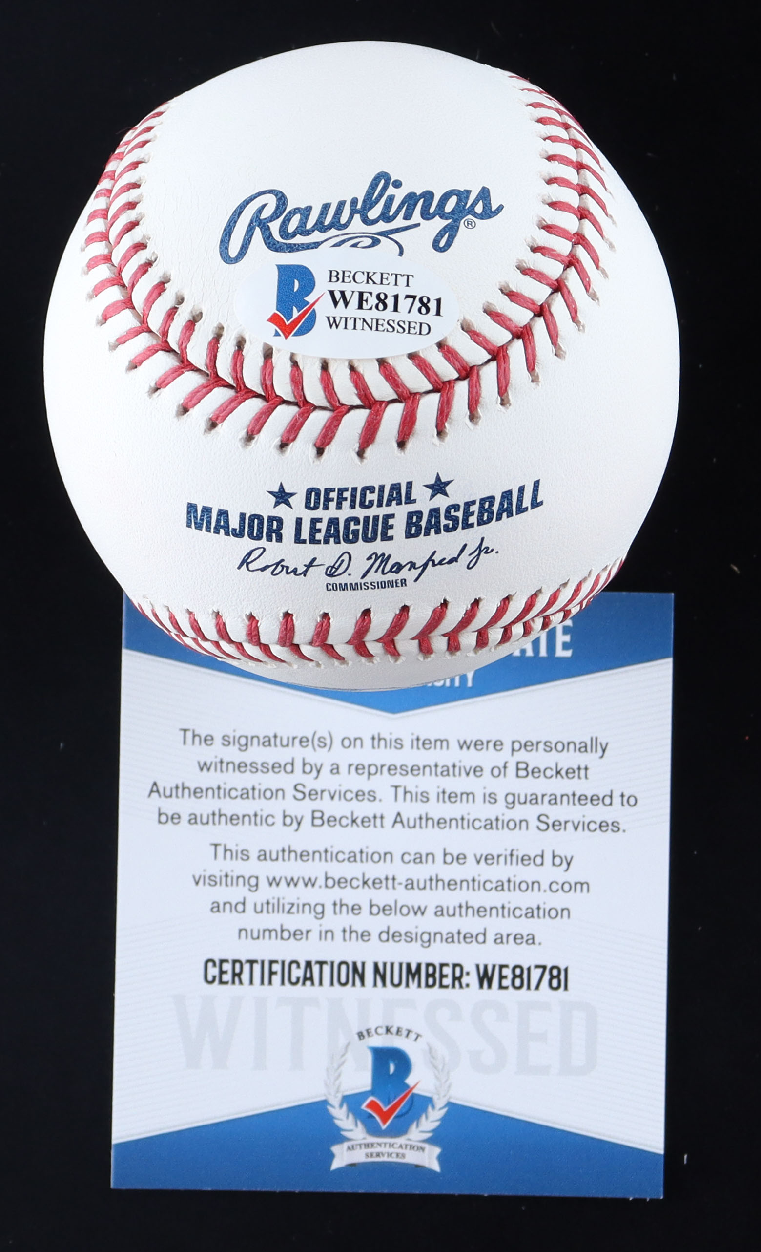 The autograph includes an official Beckett Authentication Services serially-numbered hologram and matching COA for authenticity purposes. The signing of this item was witnessed by Beckett.