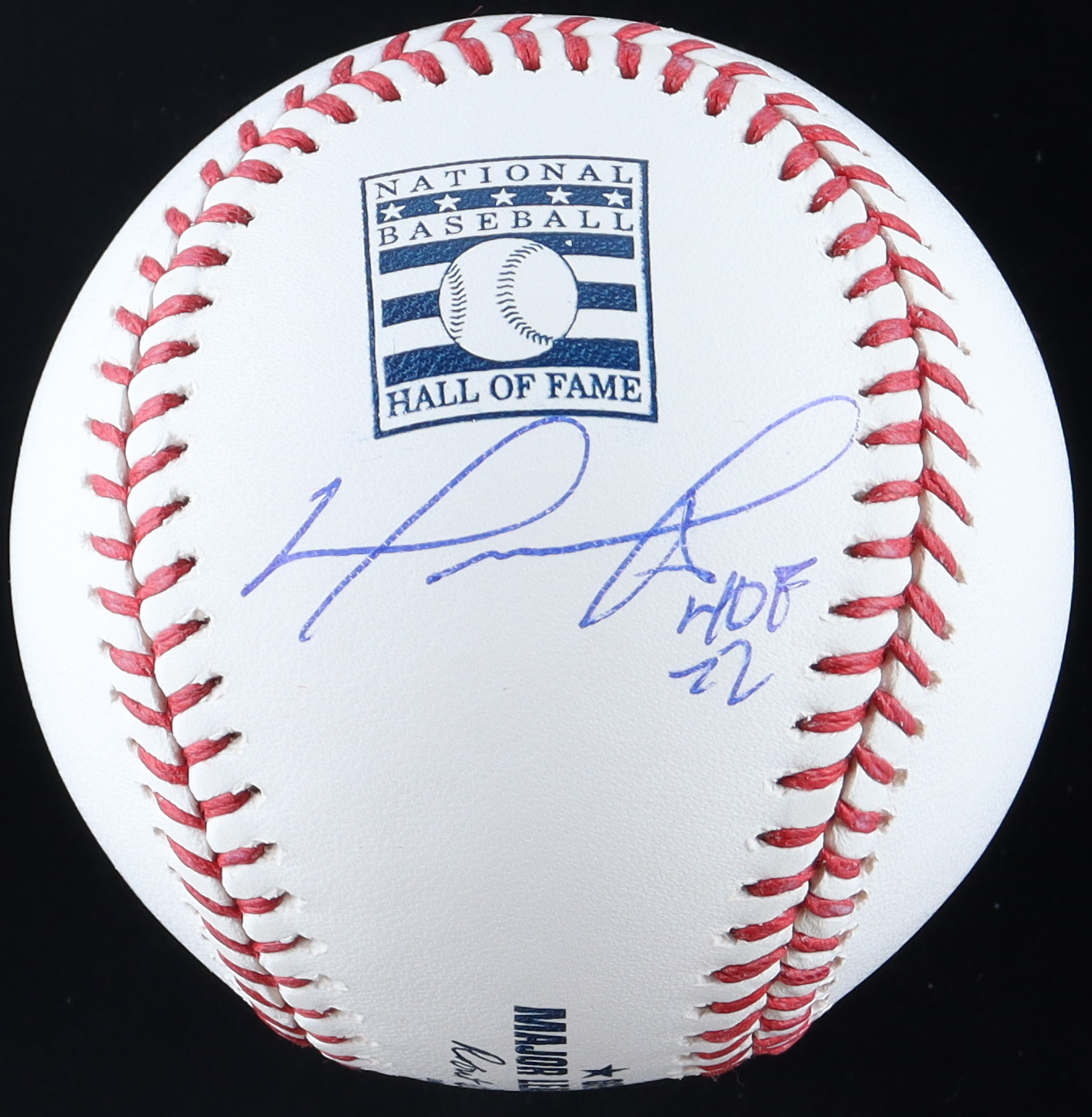 Rawlings Official Major League Hall of Fame logo baseball. Hand-signed and inscribed by David Ortiz (Boston Red Sox, HOF).