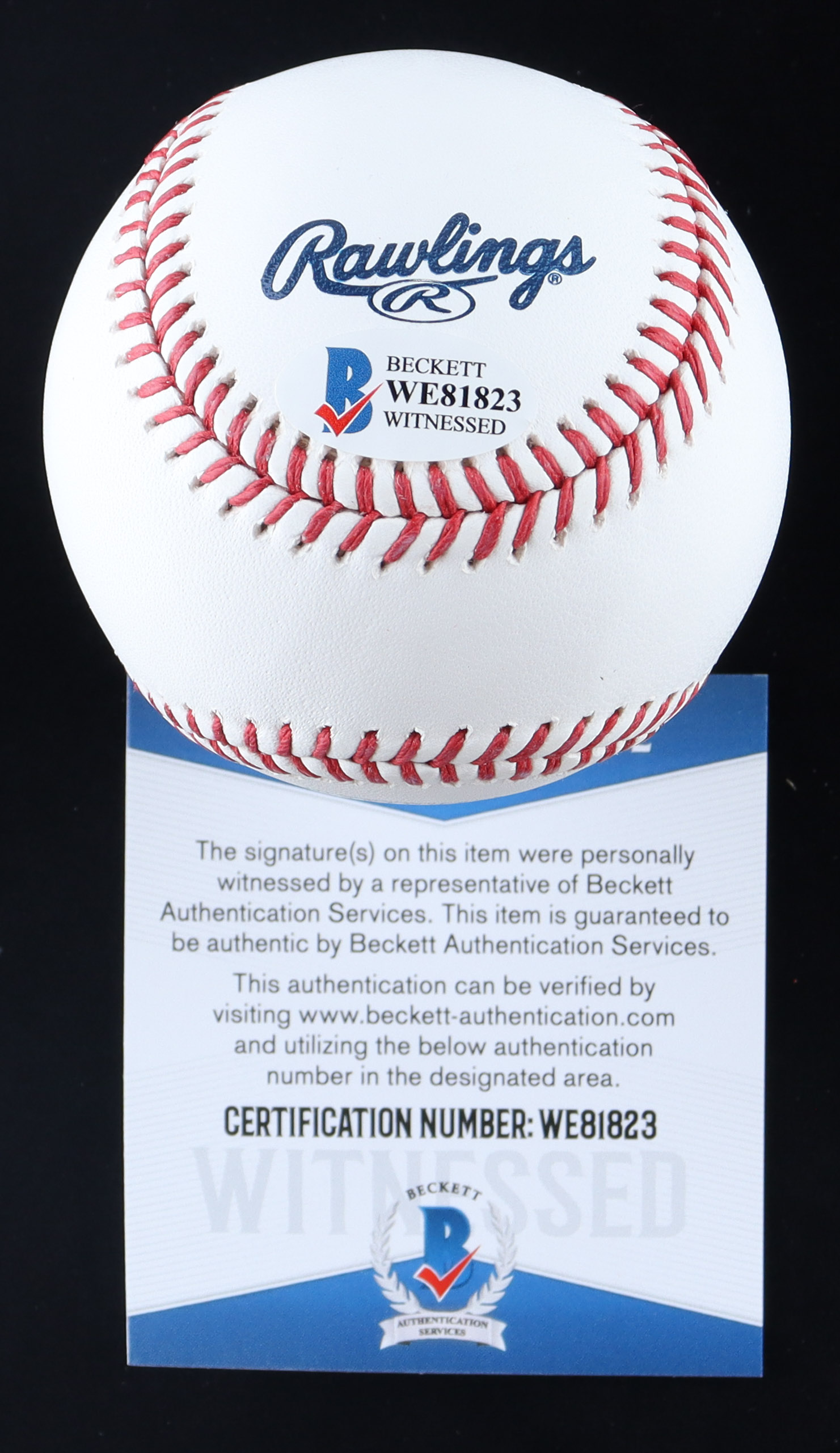 The autograph includes an official Beckett Authentication Services serially-numbered hologram and matching COA for authenticity purposes. The signing of this item was witnessed by Beckett.