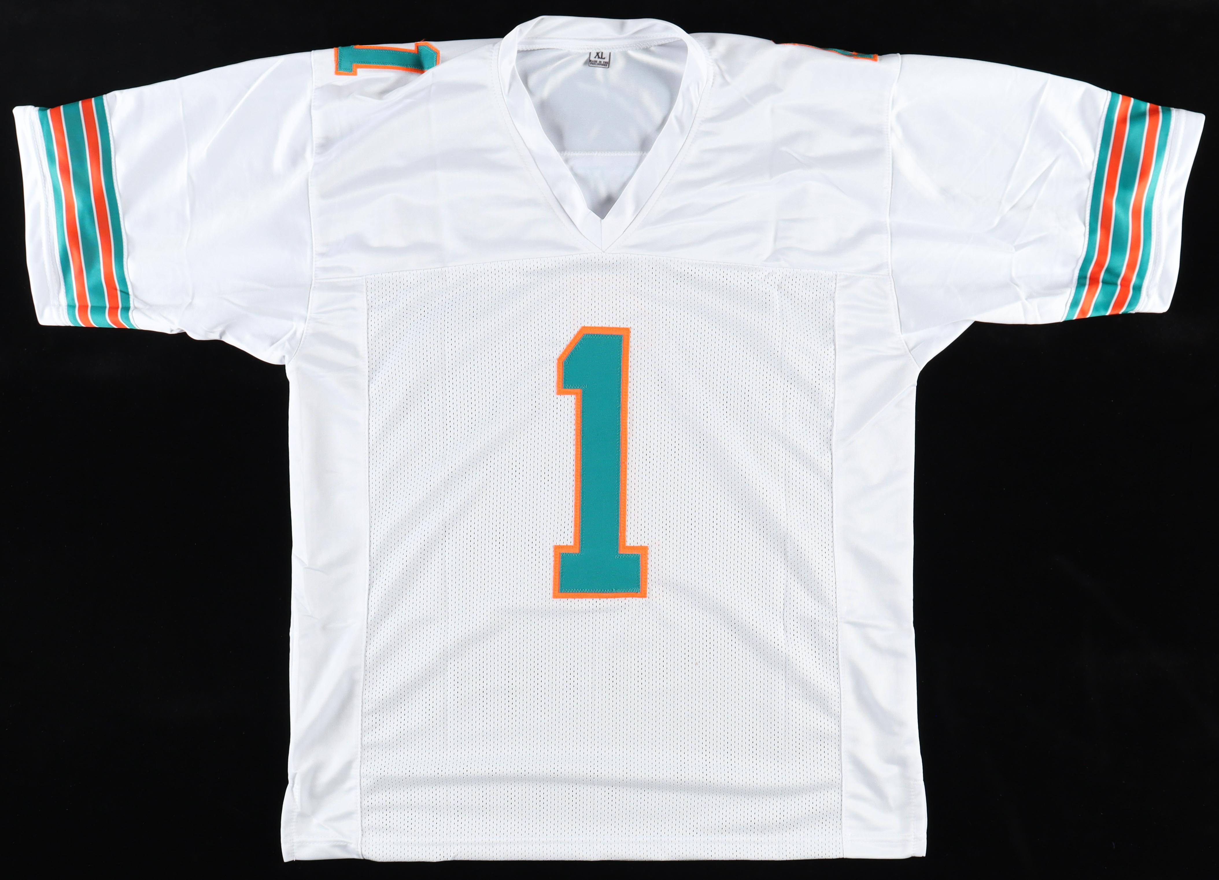 Custom jersey with everything sewn on, size XL. Hand-signed by Tua Tagovailoa.