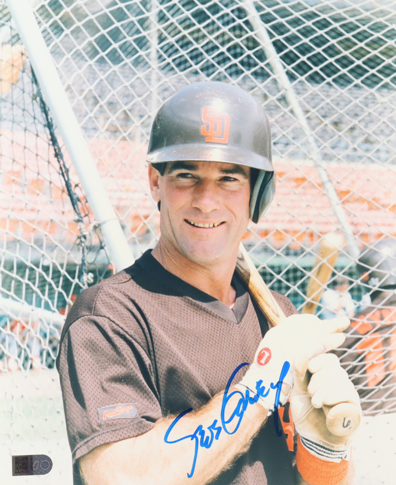 Photo measures 8" x 10" in size and has been hand-signed by Steve Garvey (San Diego Padres).