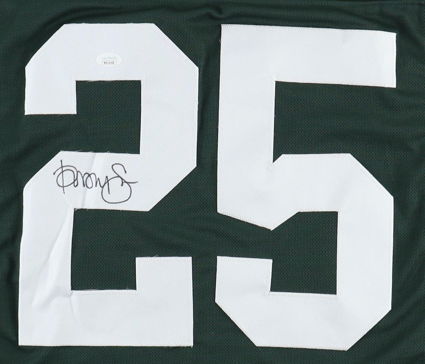 Custom jersey. Everything is sewn on, size XL. Hand-signed by Dorsey Levens.