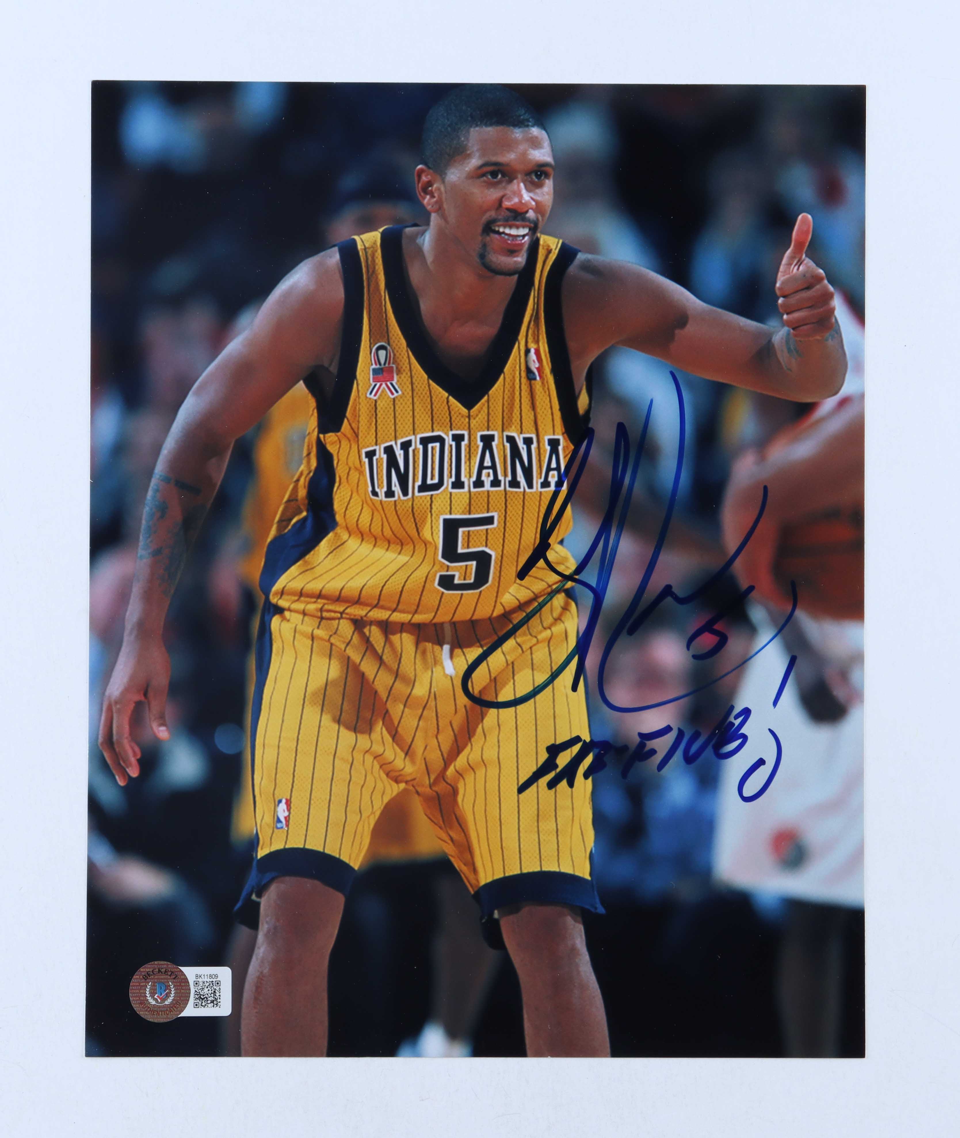 Photo measures 8" x 10" in size and has been hand-signed and inscribed by Jalen Rose (Indiana Pacers).