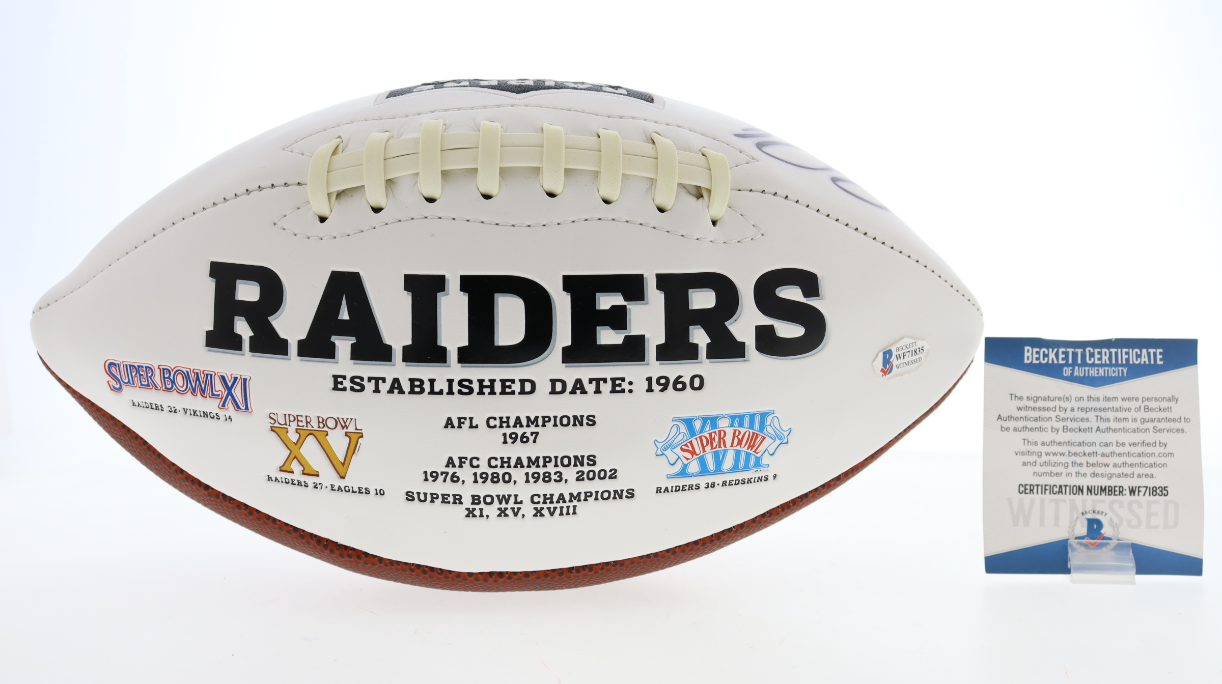 The autograph includes an official Beckett Authentication Services serially-numbered hologram and matching COA for authenticity purposes. The signing of this item was witnessed by Beckett.