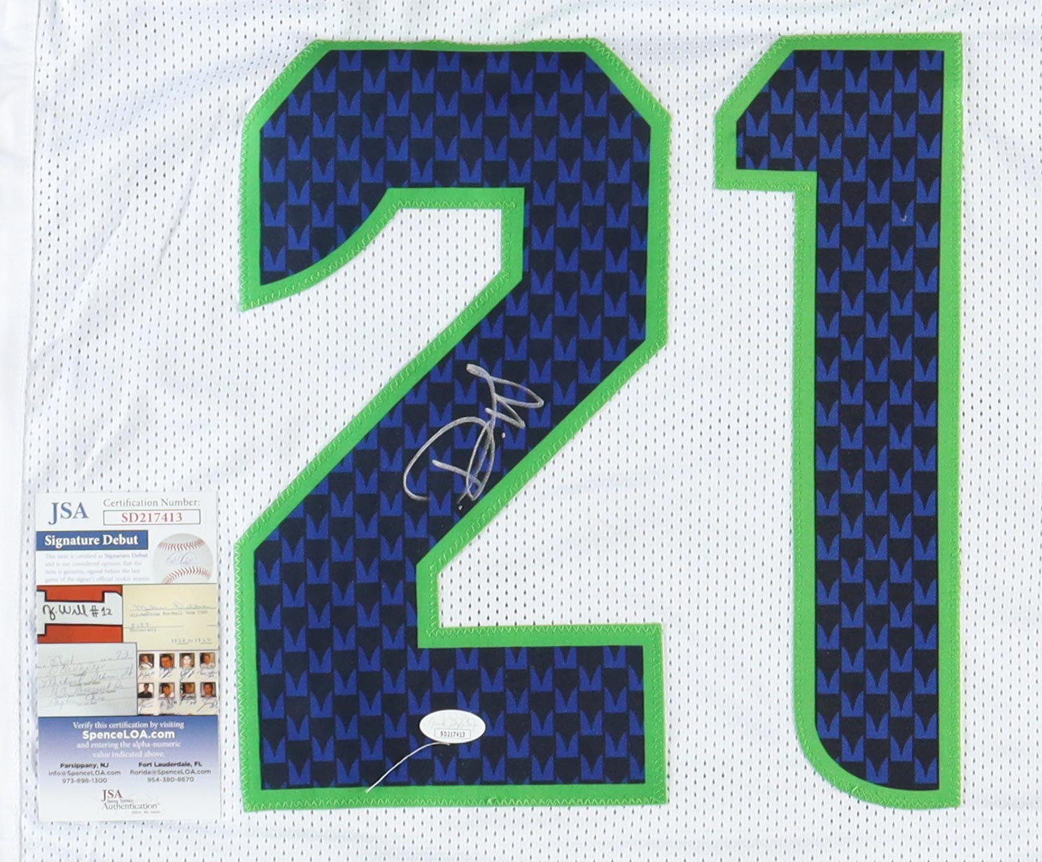 The autograph(s) includes an official James Spence Authentication (JSA) "Signature Debut" hologram and COA. "Signature Debut" is the autographed memorabilia equivalent to a rookie card. The JSA definition of a "Signature Debut" is as follows: "Any item that is autographed and received by JSA prior to the last game of the signer's official rookie season.