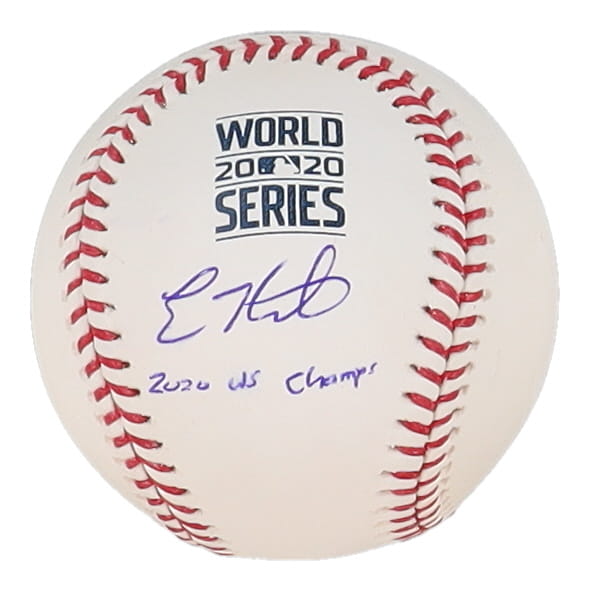 Rawlings Official 2020 World Series Baseball. Has been hand-signed and inscribed by Enrique Hernandez (Los Angeles Dodgers).