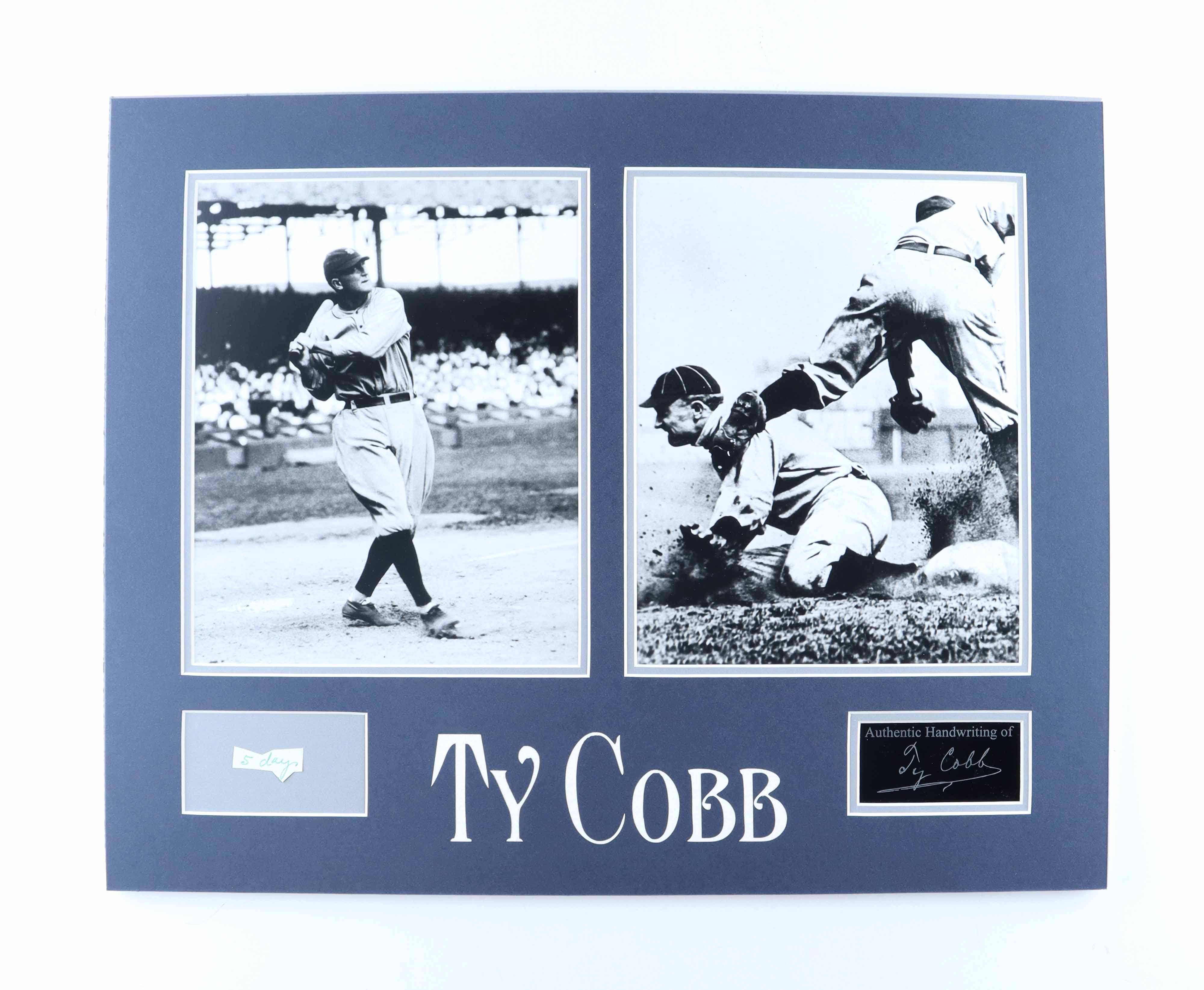 Custom matted display measures 16" x 20" in size and features a cut from a letter that had been hand-written by Ty Cobb (D. 1961, Detroit Tigers, HOF). Please note, Cobb did not sign the cut but he did write the word(s) that are featured on the cut.