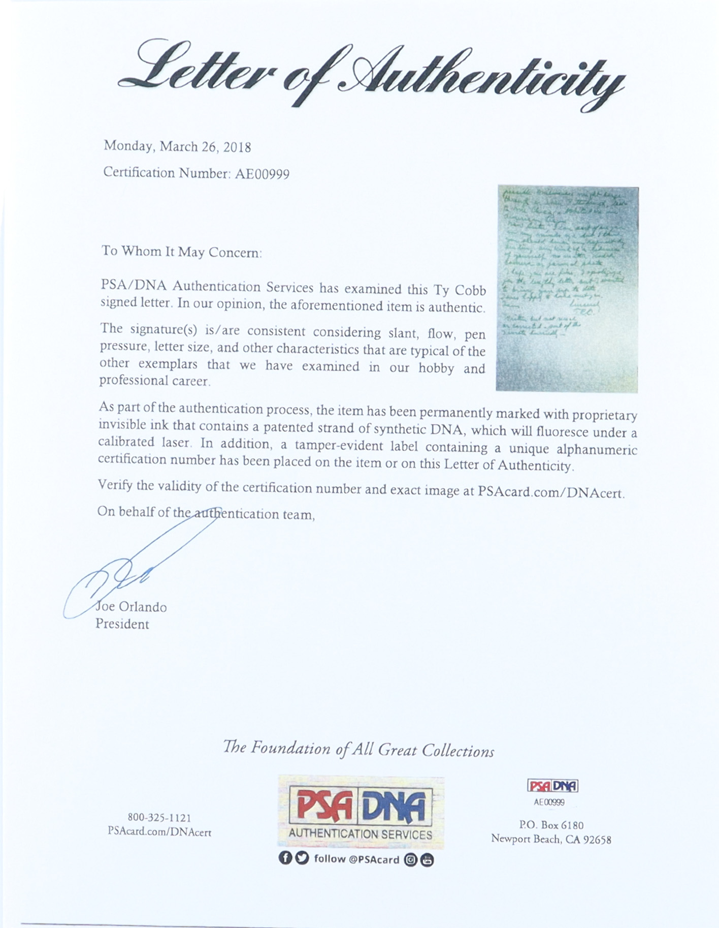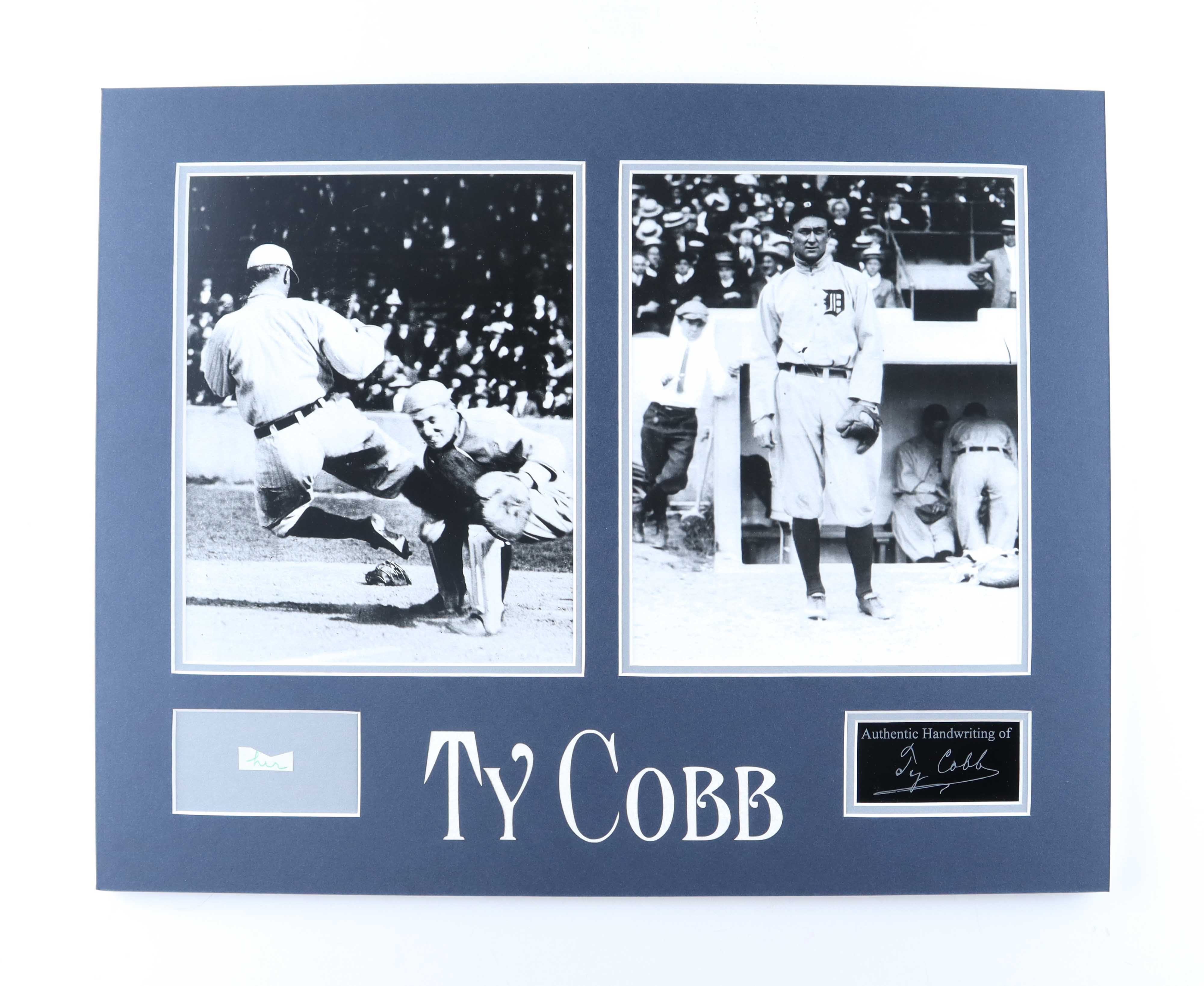 Ty Cobb Hand-Written Tigers Custom Matted Cut Display (PSA)