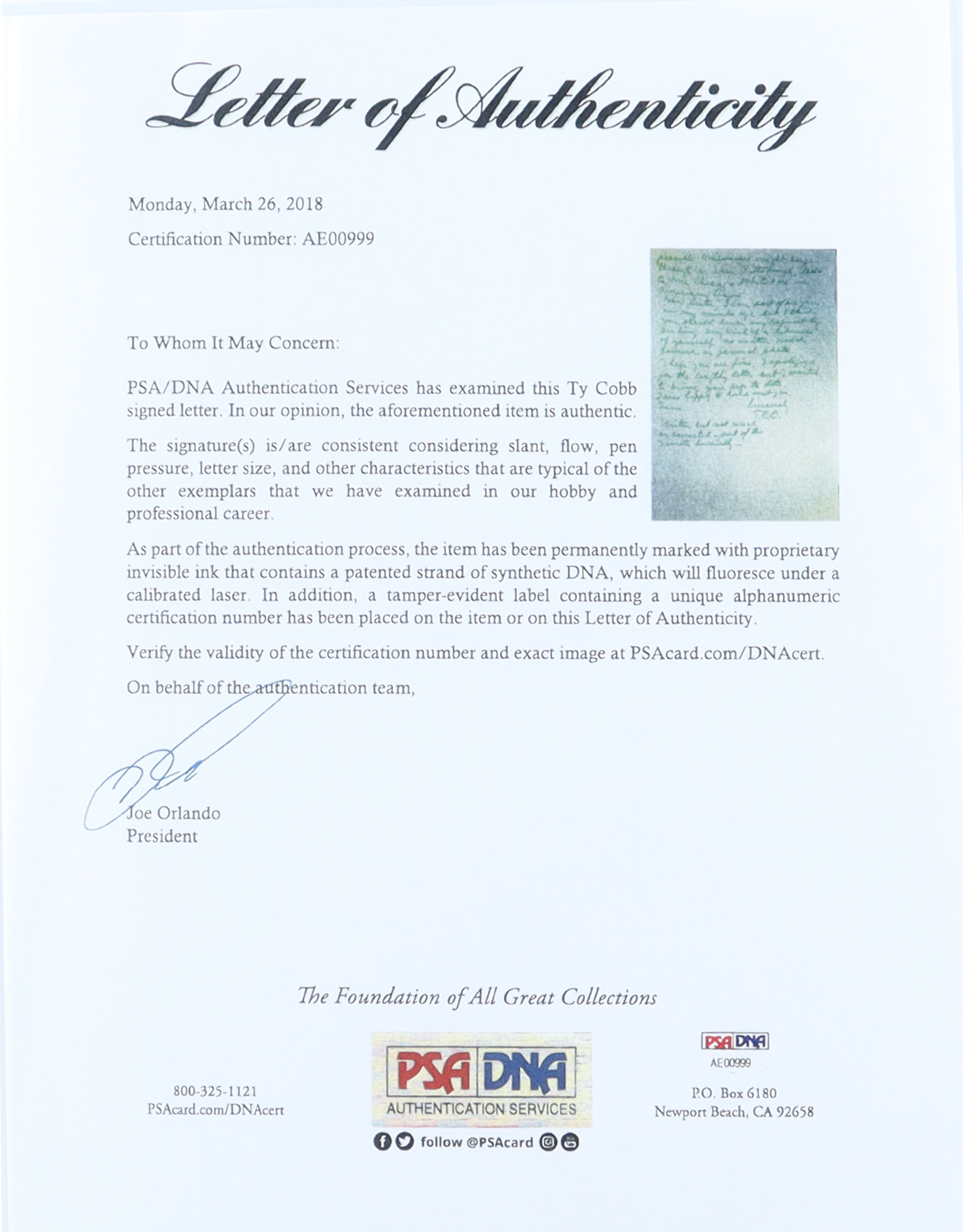 The lot / autograph(s) includes a copy of a PSA/DNA LOA for authenticity purposes.