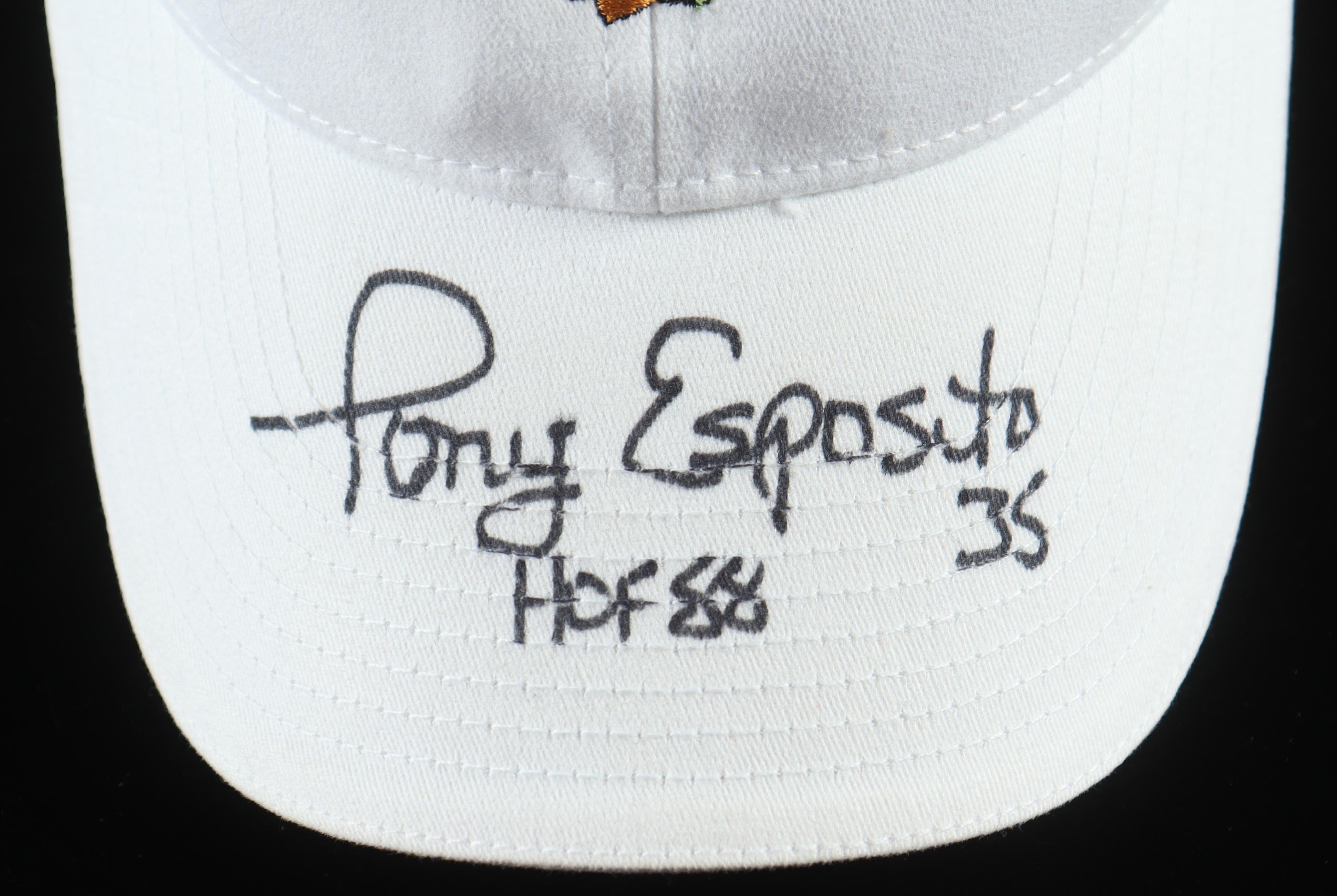 New Era adjustable hat has been hand-signed by Tony Esposito (D. 2021, Chicago Blackhawks, HOF).