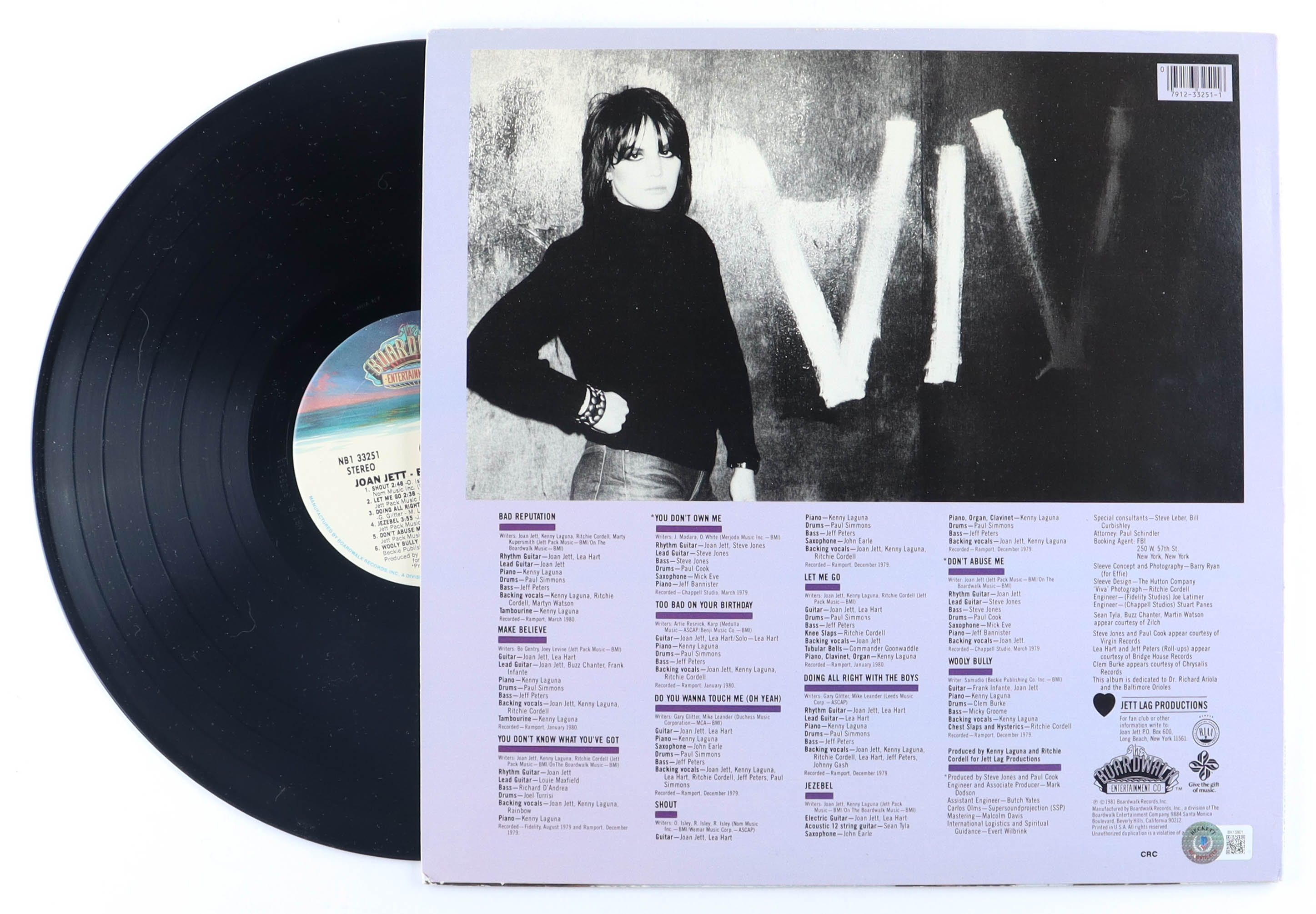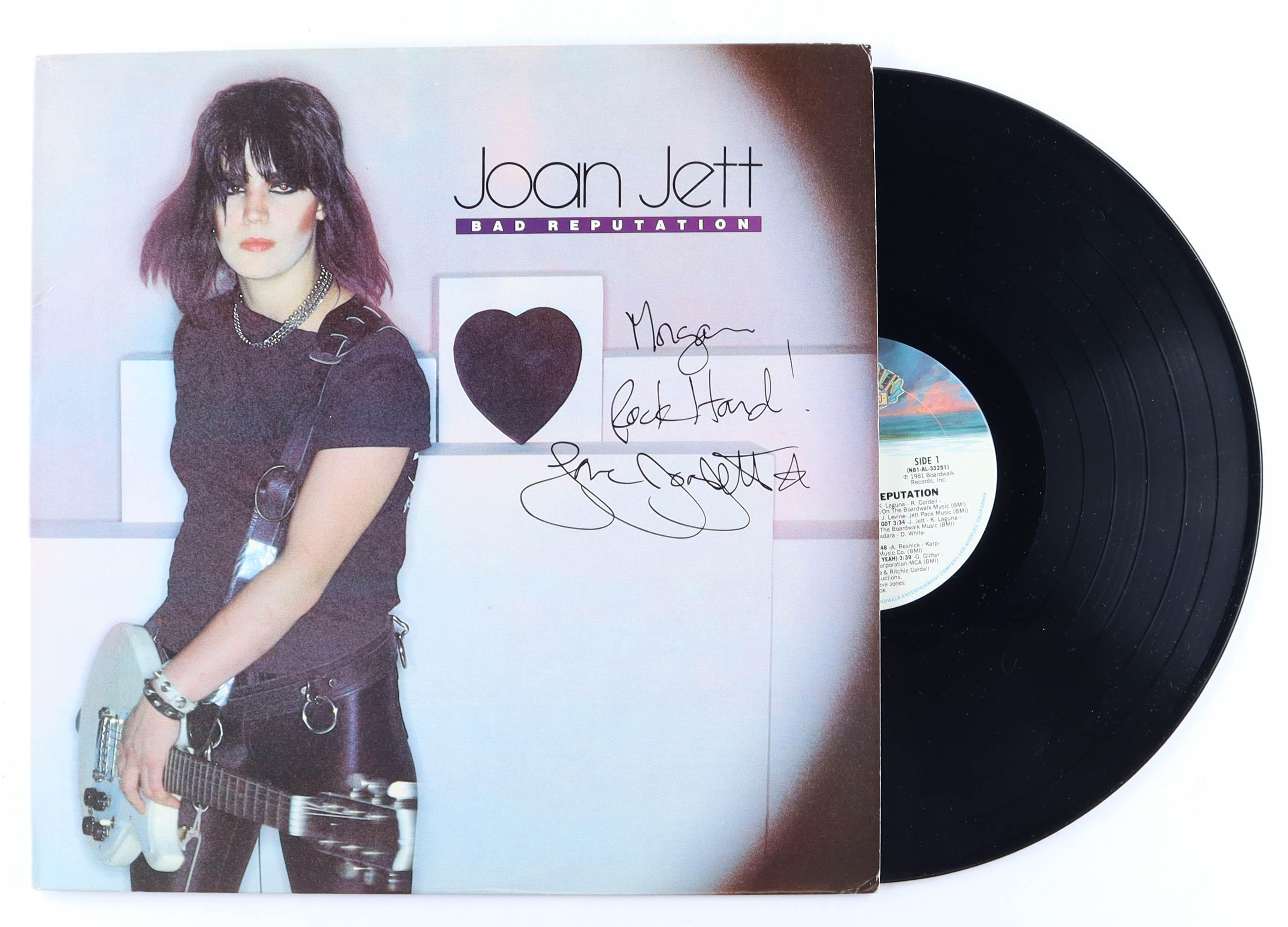 Album includes record and sleeve. Sleeve has been hand-signed and inscribed by Joan Jett. The autograph has been personalized to "Morgan."
