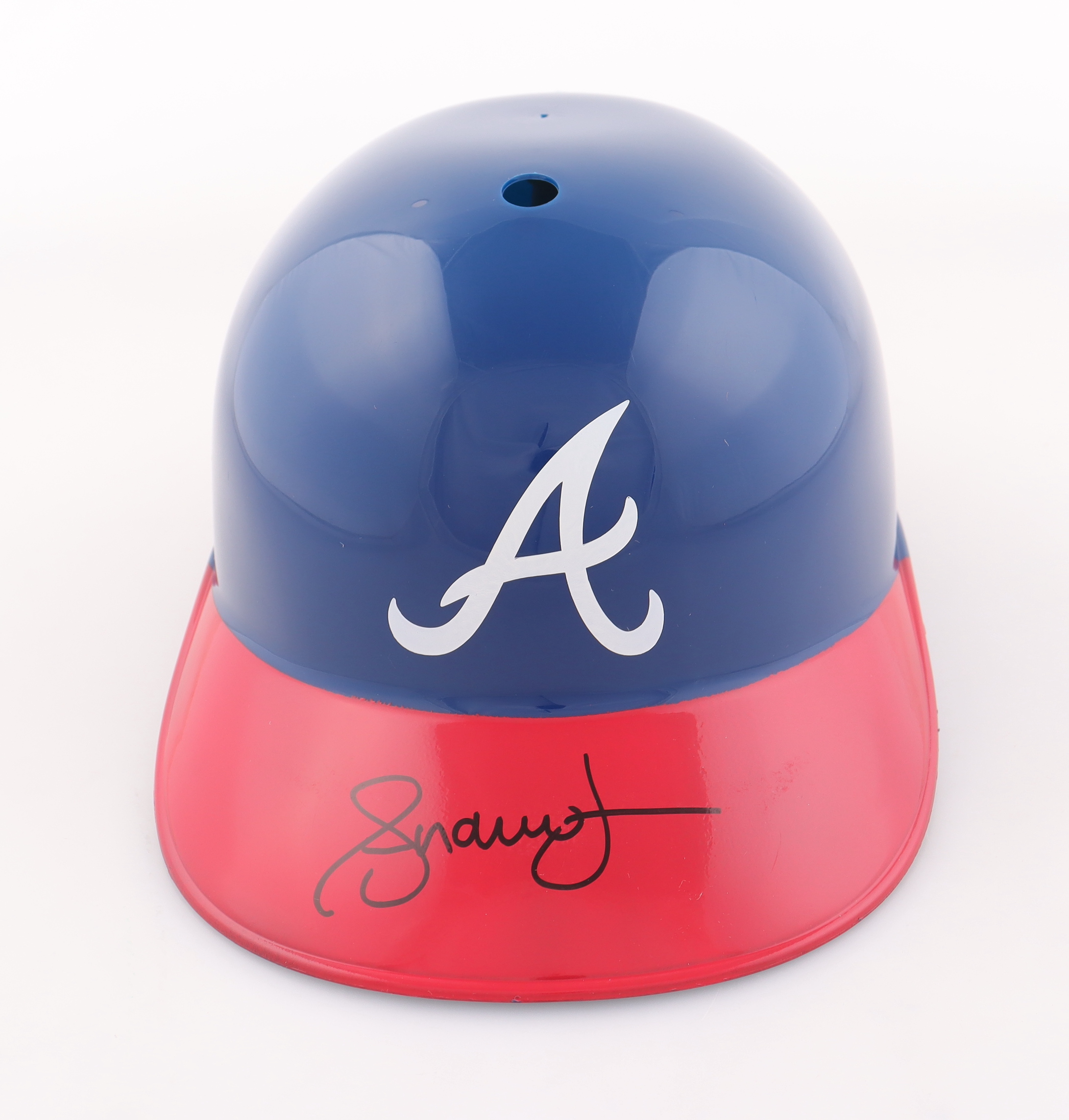 Atlanta Braves full-size plastic souvenir replica batting helmet. Hand-signed by Andruw Jones.