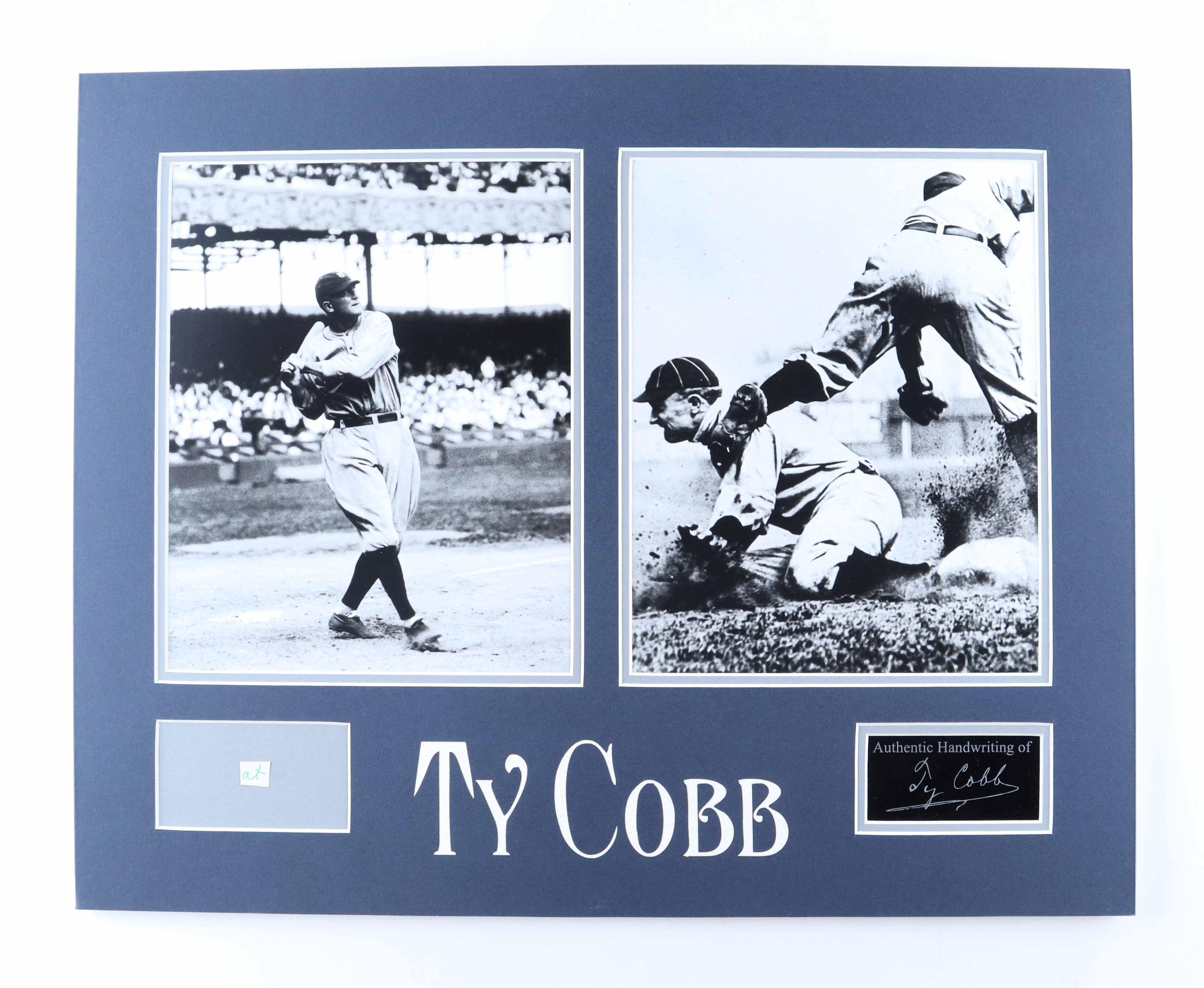 Custom matted display measures 16" x 20" in size and features a cut from a letter that had been hand-written by Ty Cobb (D. 1961, Detroit Tigers, HOF). Please note, Cobb did not sign the cut but he did write the word(s) that are featured on the cut.