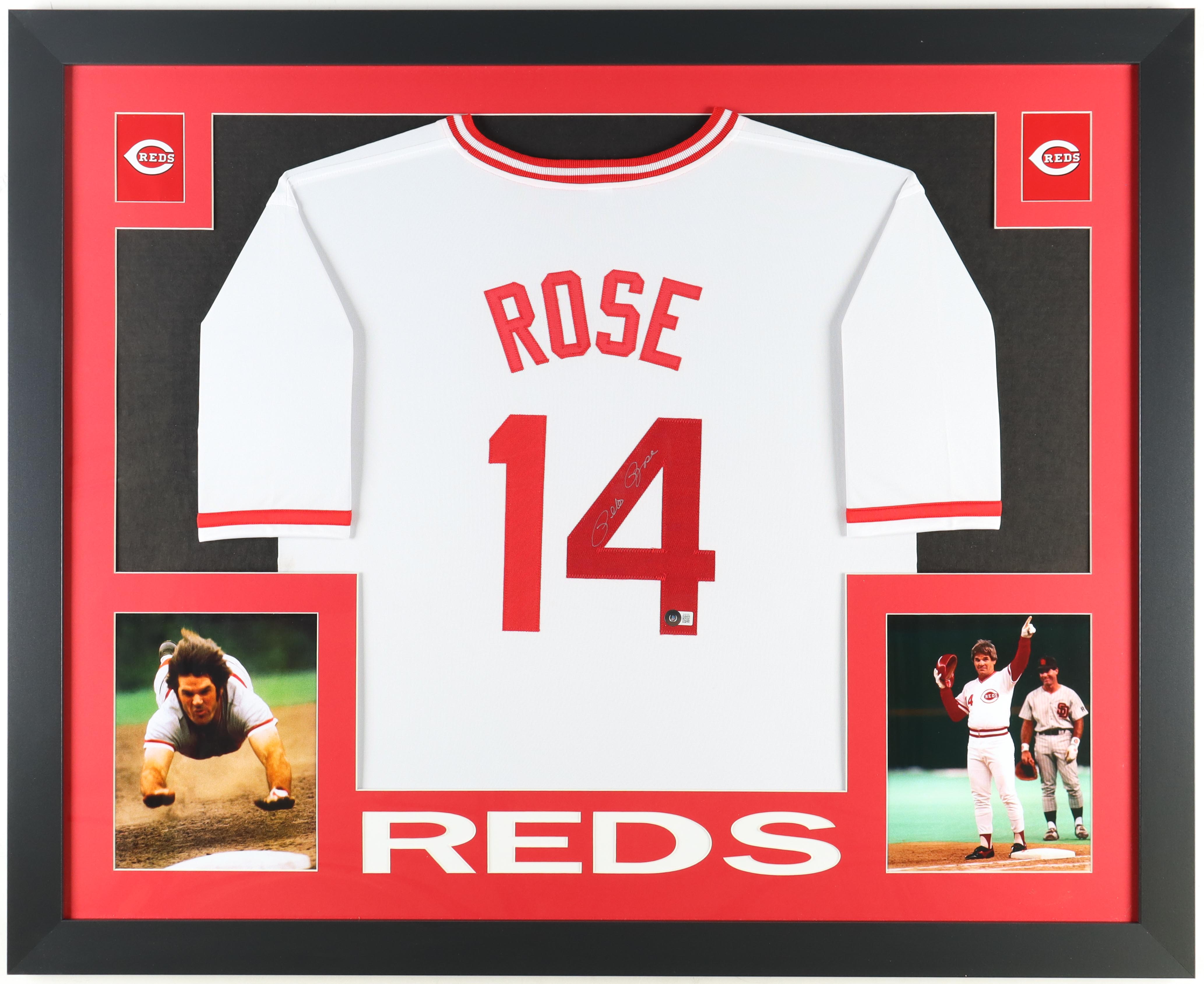 Pete Rose Signed Custom Framed Jersey Display (Beckett)