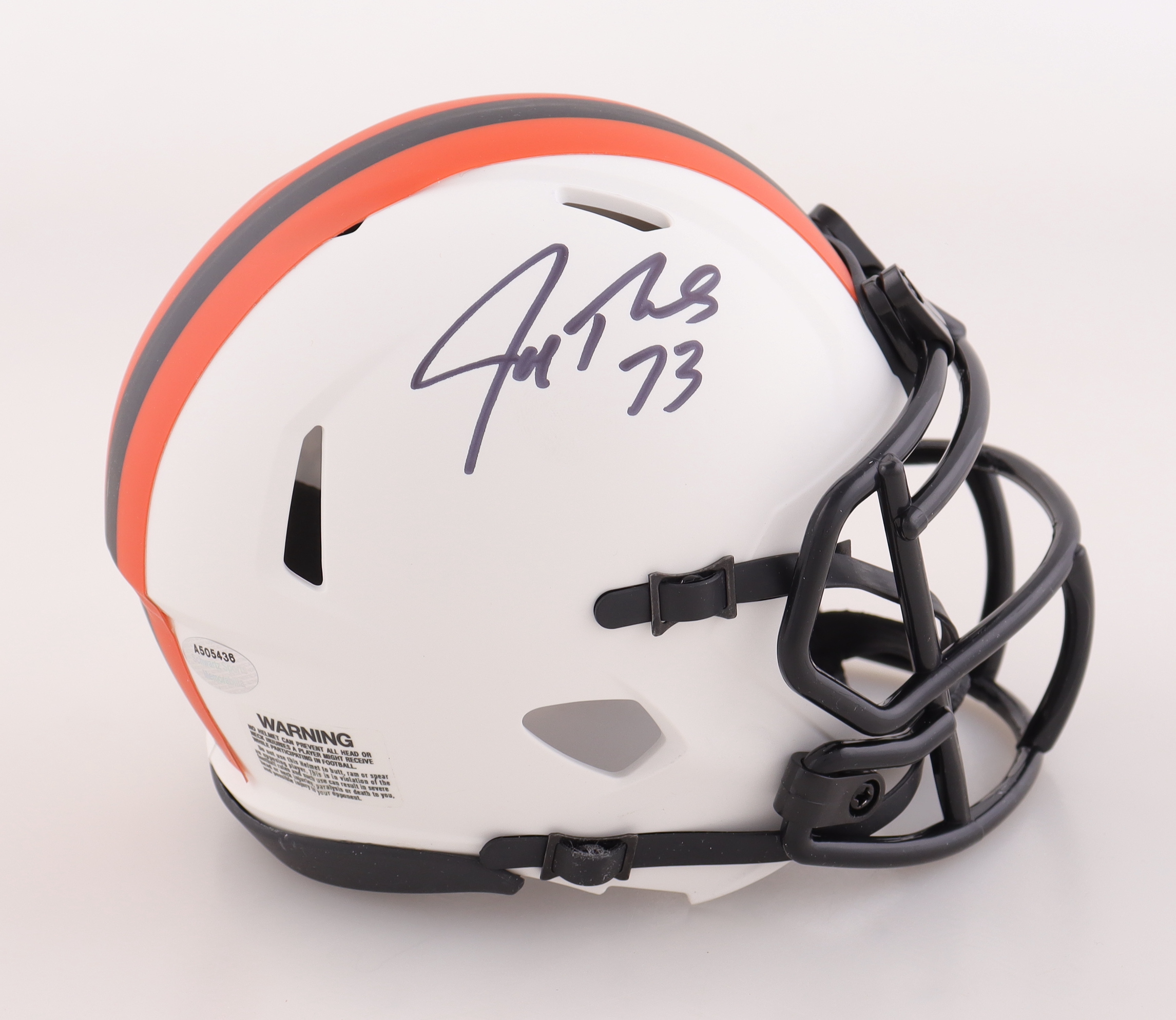 Riddell Cleveland Browns Lunar Eclipse Alternate Speed mini helmet. Hand-signed by Joe Thomas (HOF).