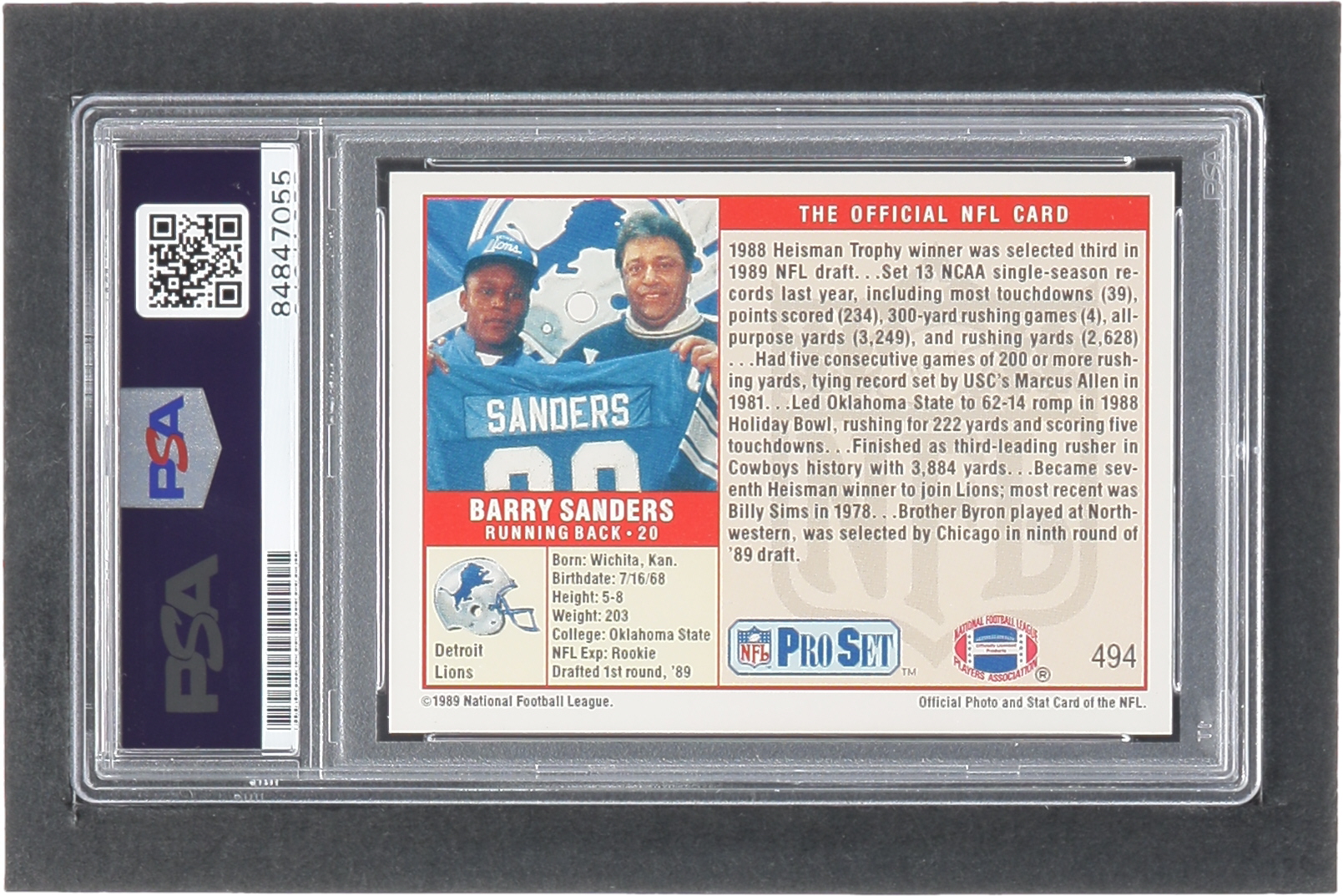 Barry Sanders Signed 1989 Pro Set #494 RC (PSA | Autograph Graded PSA 10)