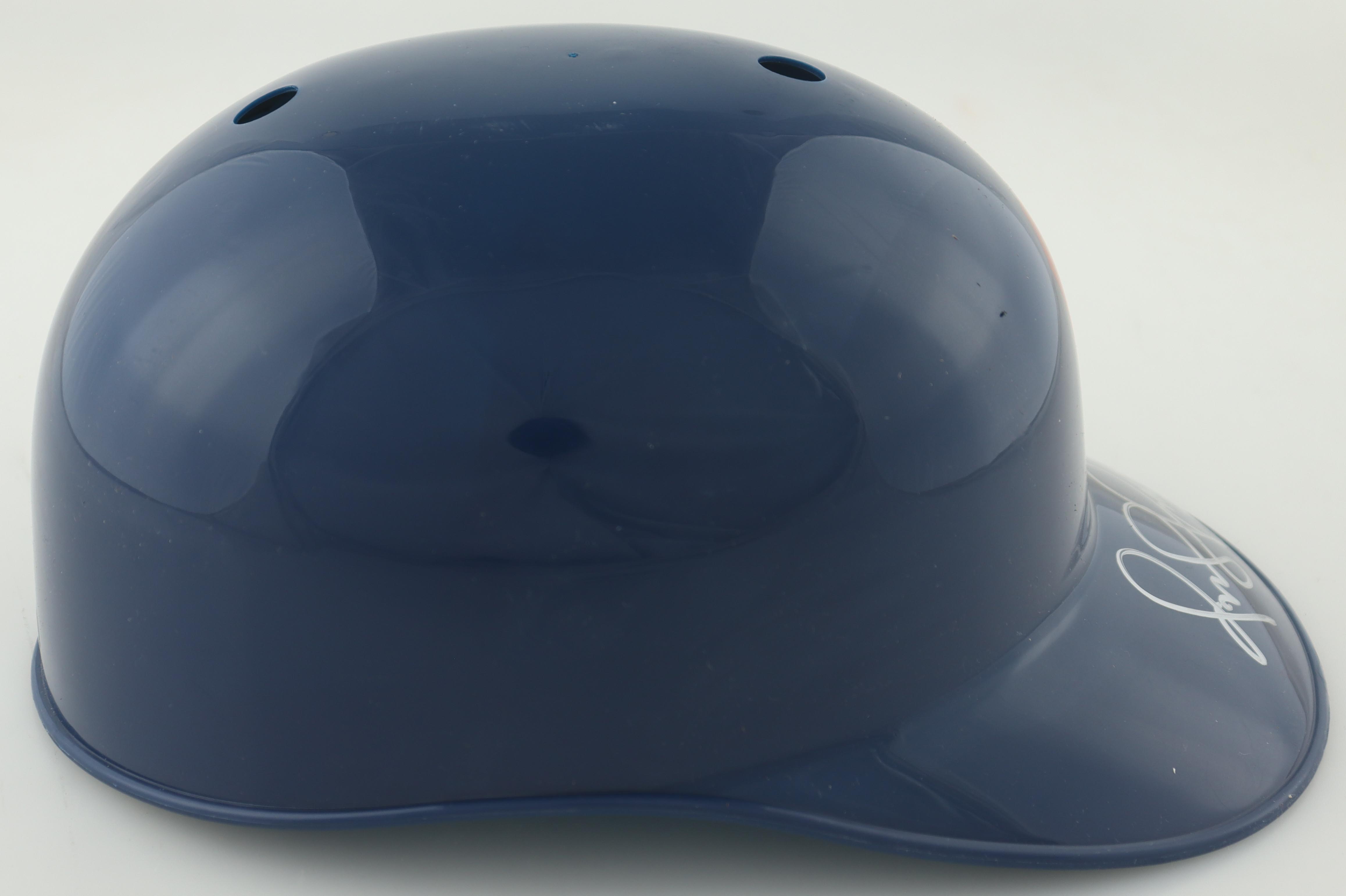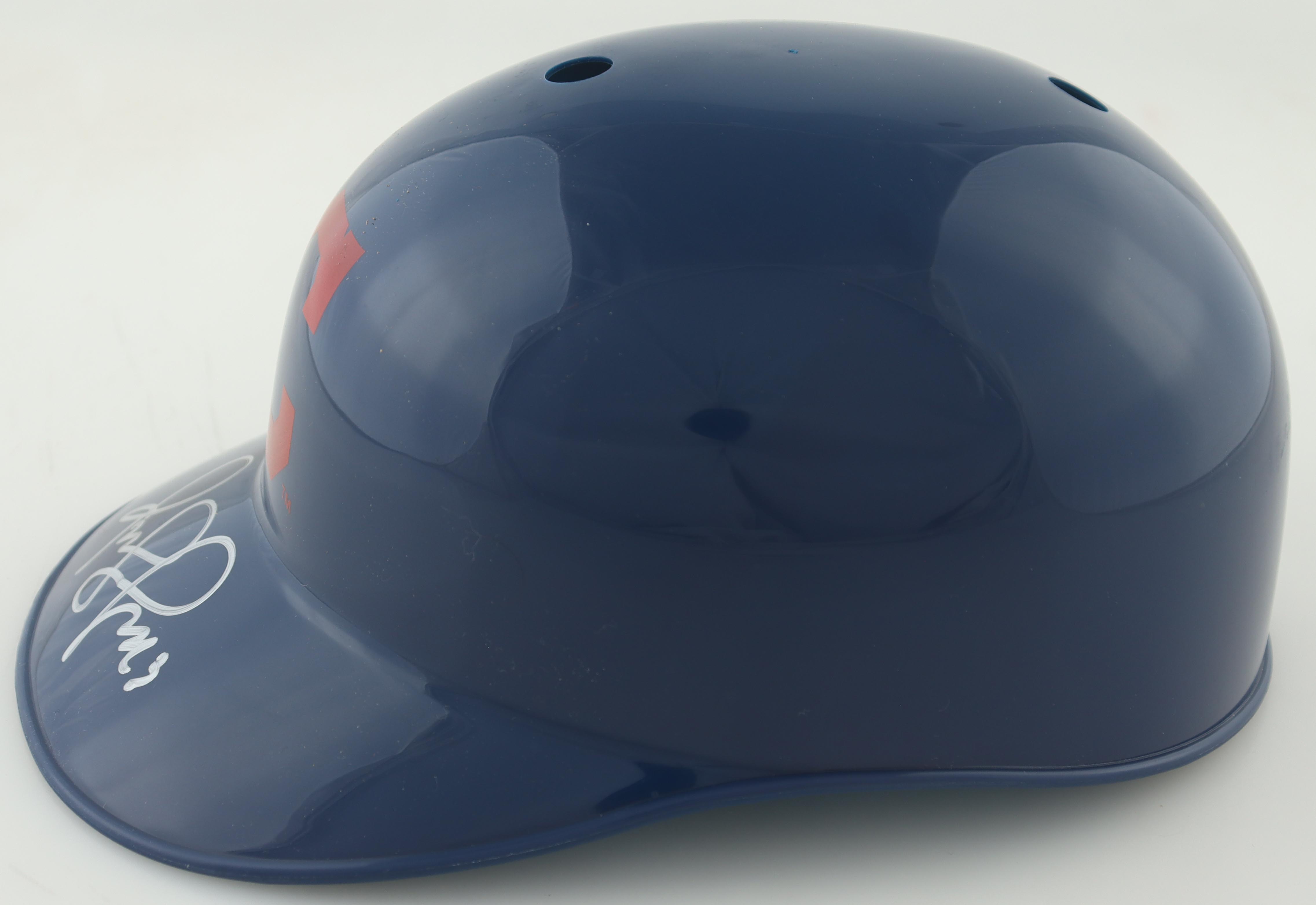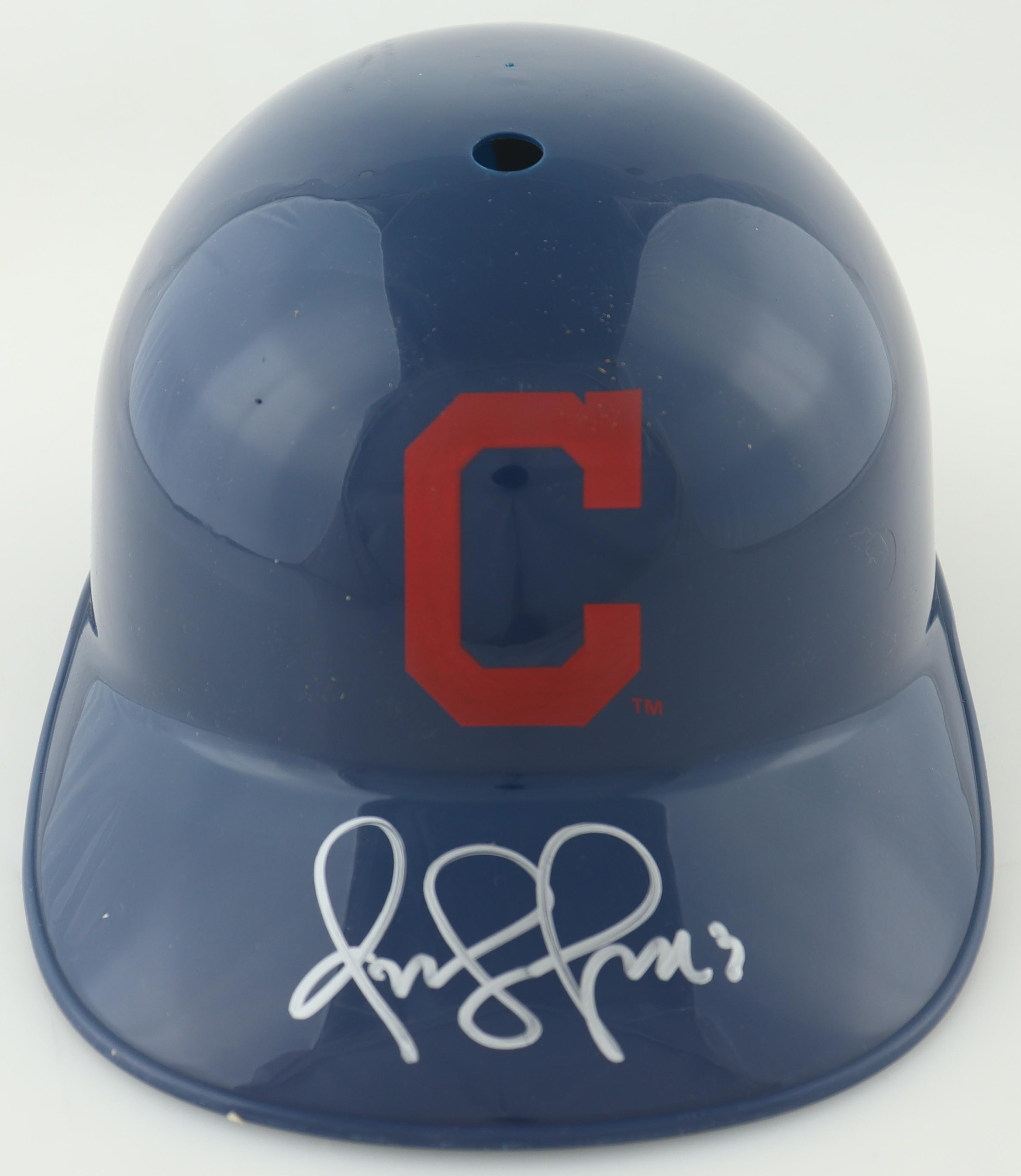 Rawlings Cleveland Indians full-size replica plastic souvenir batting helmet. Hand-signed by Omar Vizquel. Please note, there is scuffing on the helmet.
