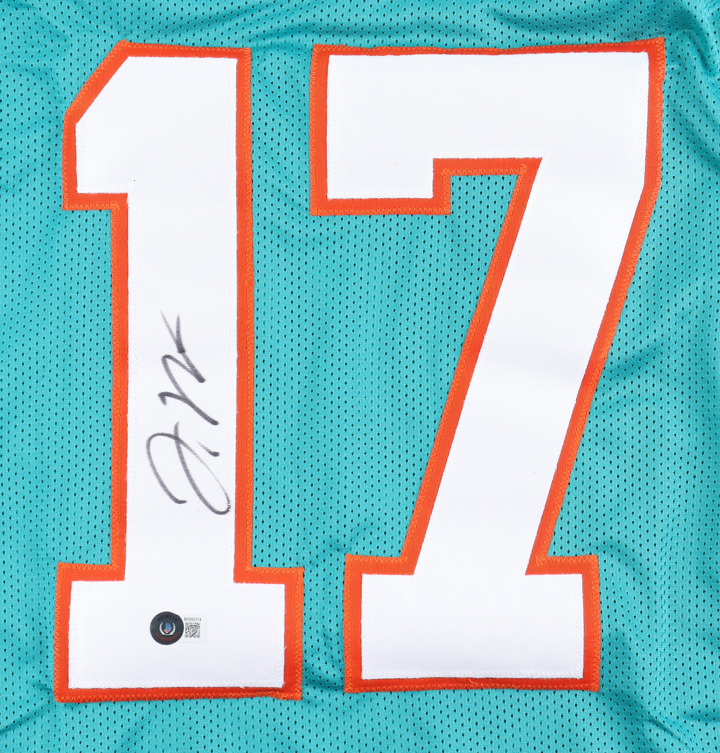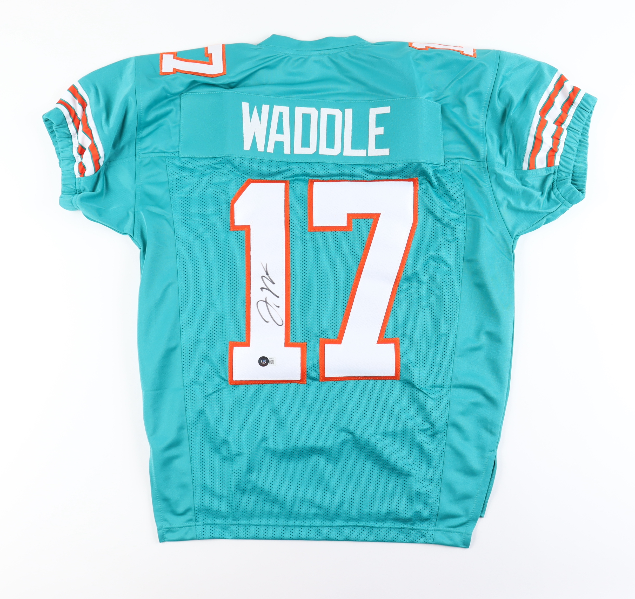 Custom jersey with everything sewn on, size XL. Hand-signed by Jaylen Waddle.