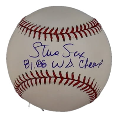 Rawlings Official Major League baseball. Hand-signed and inscribed by Steve Sax (Los Angeles Dodgers).