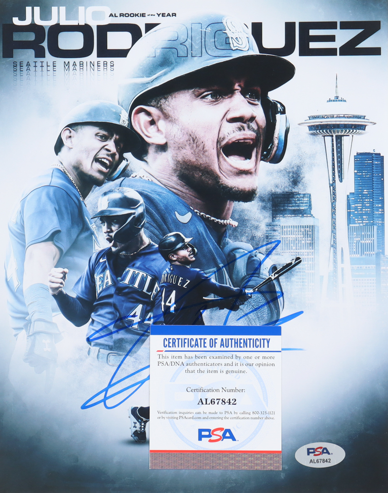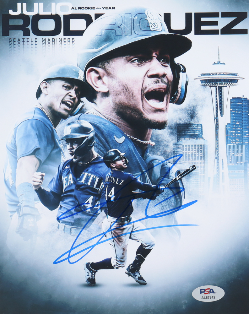 Photo measures 8" x 10" in size. Hand-signed by Julio Rodriguez (Seattle Mariners).