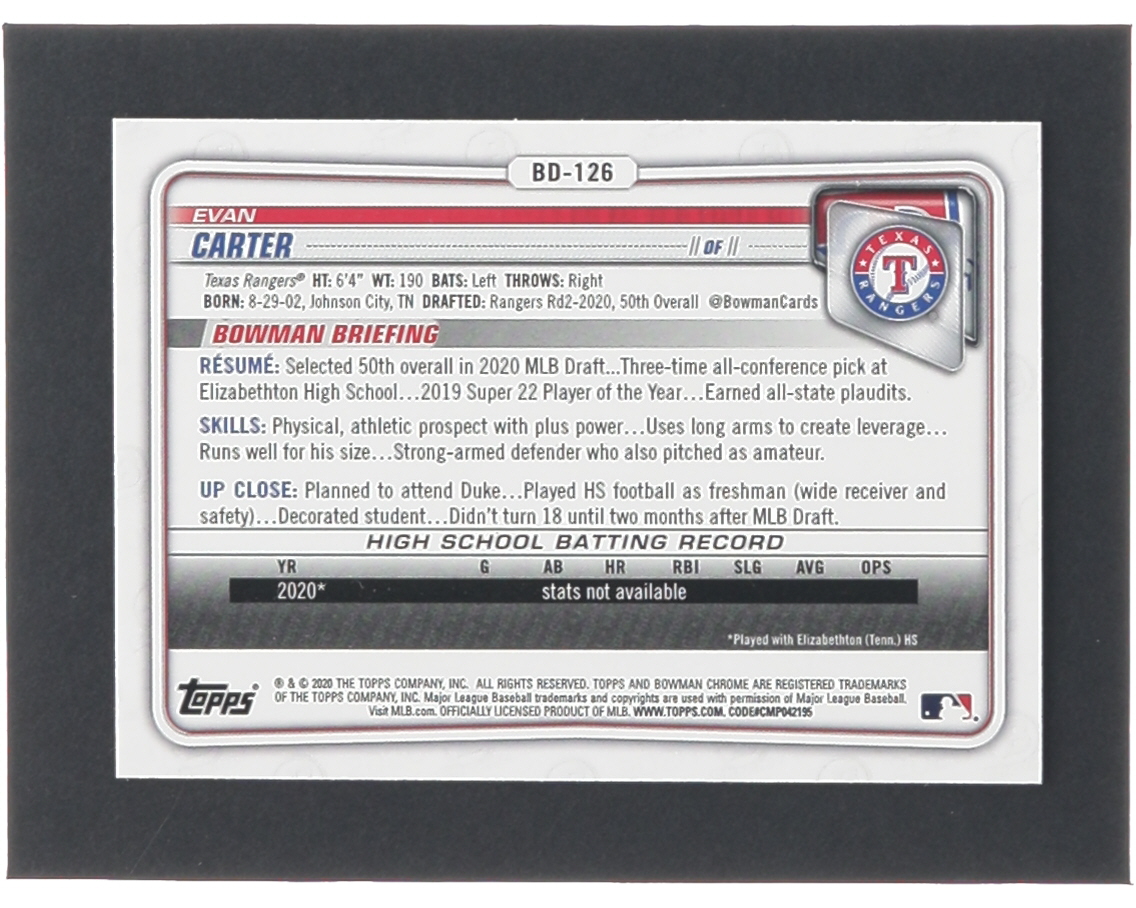 Evan Carter 2020 Bowman Chrome Draft #BD126