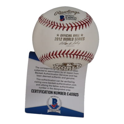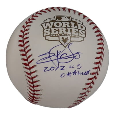 Rawlings Official 2012 World Series baseball. Hand-signed and inscribed by Jake Peavy (San Francisco Giants).